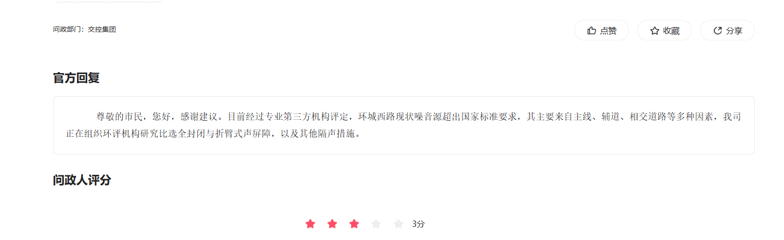 关于贵单位在3月16日回复的关于环城西路比选全封闭声屏障的事宜,有以下问题烦请解答 1.截止今天4月24日,已经过去一个多月,目前比选结果是否已经出来,全封闭屏障的方案是否具有可行性 2.3月底中铁十一局中标后,按照规定3月底应该进场安排施工,但未在环城西路相关路段看到施工痕迹,目前该施工进度安排如何 3.环城西路的改造升级,施工单位进场施工后,该路段的交通管制预计何时会告知市民,交通部门预计何时会向社会公布