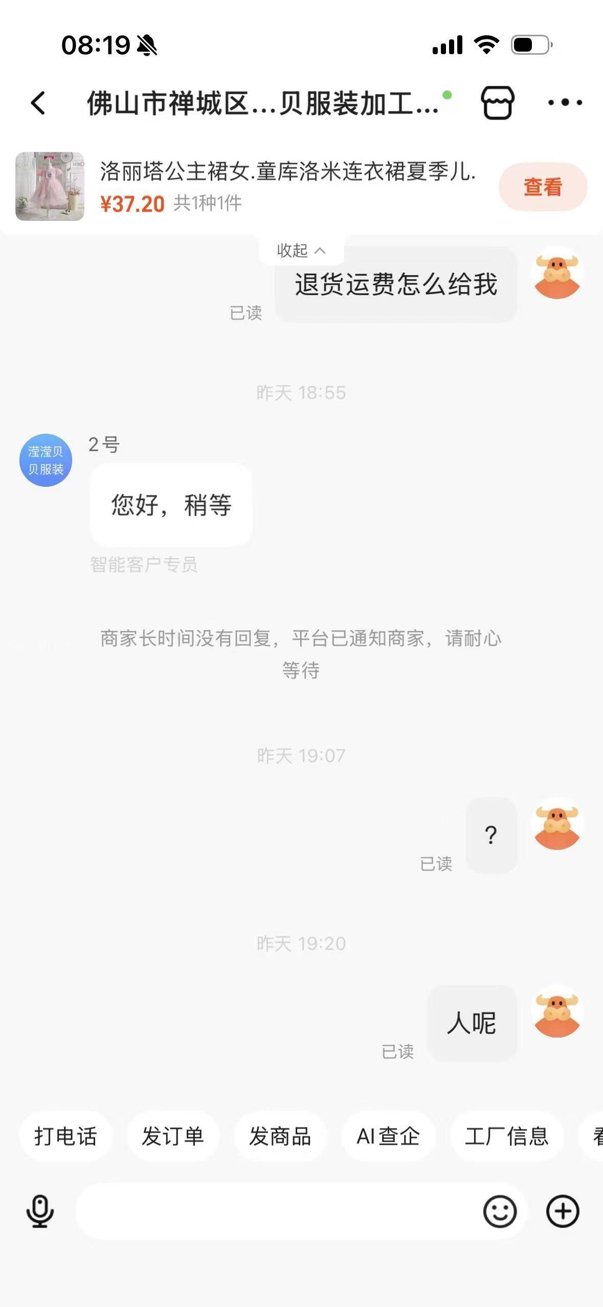 投诉阿里巴巴商家- 佛山市禅城区滢滢贝贝服装加工厂