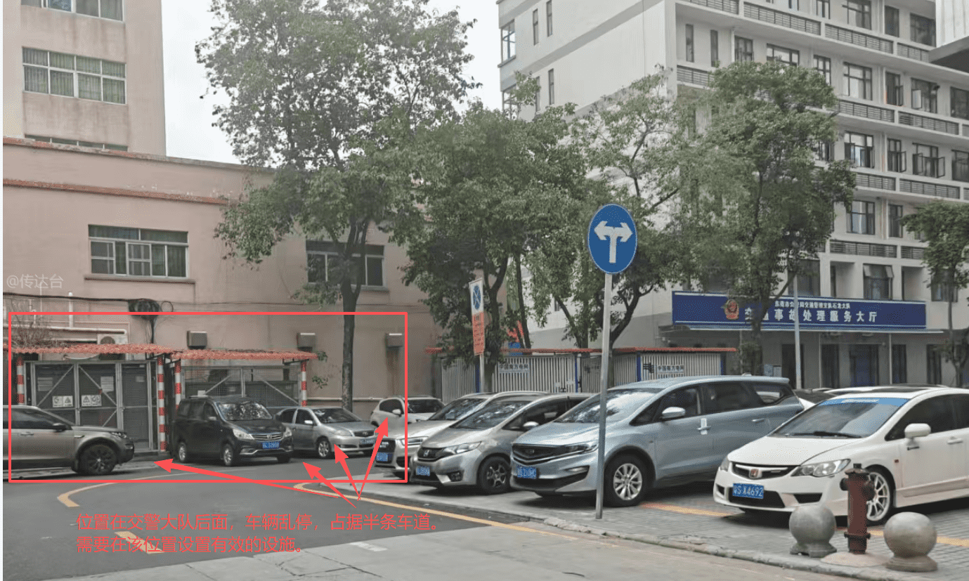 1. 石龙交警大队后面方向转弯路口(图片 1) 该路口为车辆转弯的关键节点,目前有大量车辆长期停放在红色标注的转弯区域,占据了半条车道。 隐患:车辆转弯时视线被完全遮挡,双向来车均无法预判对方动向,该路口已多次发生刮擦、碰撞事故。 诉求:在该转弯路口设置防违停设施(如隔离桩、护栏、禁停标线),彻底杜绝车辆在转弯区域违停,保障转弯车辆的视线和通行空间。 2. 黄州消防队后方至凯旋湾楼盘路段(图片 2) 该路段为双向通行道路,目前道路两侧长期被违停车辆占据,原本的双向车道被压缩为 “单车道”。 隐患:会车时需反复倒车避让,通行效率极低,早晚高峰极易造成拥堵;同时违停车辆遮挡非机动车和行人,存在严重安全隐患。 诉求:对该路段增设中央隔离护栏,分隔双向车流,同时在道路两侧增设禁停标线或隔离桩,禁止车辆占用车道违停,恢复双向通行功能。 3. 凯旋湾与龙城国际之间的龙升路交汇路口(图片 3) 该路口本就通行空间有限,目前路口两侧、龙升路转入该路段的转角位置,长期有车辆违停。 隐患:违停车辆完全遮挡了驾驶员的视线,无论是从龙升路转入该路段,还是从该路段驶出转入龙升路,都存在严重的视觉盲区,极易因无法预判路况引发交通事故。 诉求: 在路口两侧的转弯角增设防违停警示柱 隔离桩,禁止车辆停放在转角区域; 完善路口的禁停标线和导向标线,明确通行边界,消除视线盲区。 4. 黄州消防队旁路段(图片 4) 该路段路面标线规范清晰,但单侧长期被违停车辆占用,双向车道被迫变为单向通行。 隐患:车辆会车困难,通行秩序混乱,原本良好的道路通行条件被完全破坏。 诉求:在该路段增设中央隔离护栏,分隔双向车流,同时对违停行为加强巡查执法,恢复道路的正常双向通行功能。