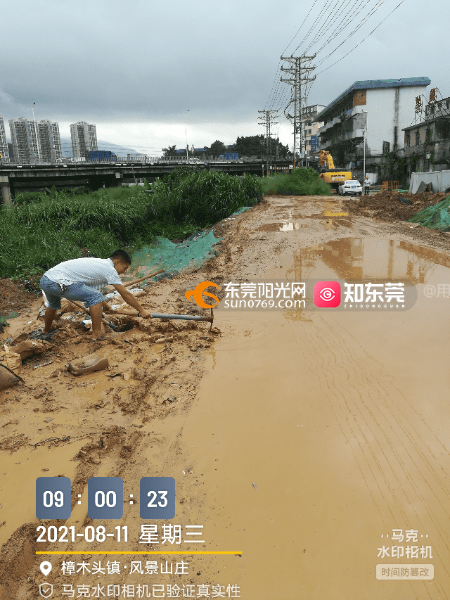 再次强烈投诉樟木头金洋路风景山庄到樟洋桥下道路无法行走! 之前有些附近邻居投诉过,结果前几天市城建及施工人员有来现场视察,说两三天会弄好,现己过近十天 一、只补了几块从樟洋桥到飞达路段几块水泥 二、重要部位一直没弄,行人无法行走,亲眼见过多起电动车,自行车摔倒污水中情况! 三、现在雨季本就湿滑,施工人员晚上为省事却把污水直接抽到路中间,而不排入河中 四、请领导勿必亲临现场,亲自走几步,体会下附近老百姓出行是多么困难,而不是边上看看 五、小车一经过只能去洗车店洗车 六、工期太久,居民投诉没引起足够重视,这是领导监管问题还是施工问题? 七、被逼无耐,附近小区保安及业主自行排污,于心何忍,而这解决不了根本