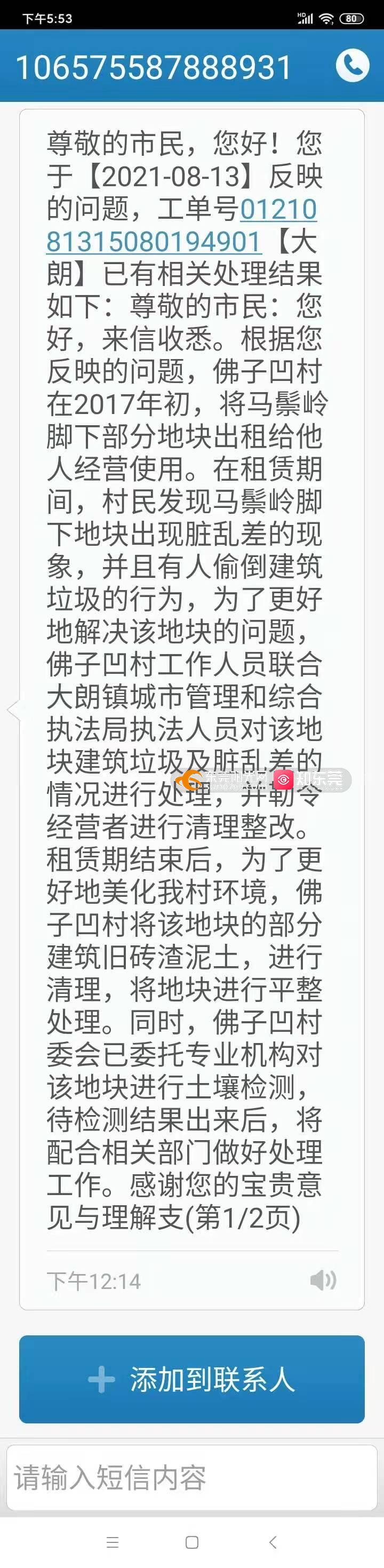 尊敬的市民:您好,来信收悉。根据您反映的问题,佛子凹村已经多次对您作出回复,并且镇相关部门,如国土、环保等都已经对该地块进行过相应检测。感谢您的宝贵意见与理解支持。