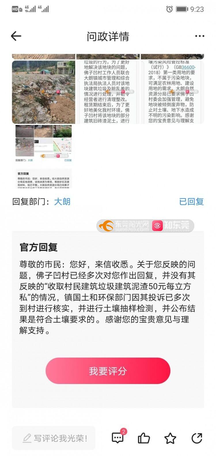 你说这里的土壤是合格的,地下埋着大量的建筑垃圾生活垃圾,这也合格吗?可否把埋着的建筑垃圾生活垃圾挖出来,让村民看下合不合格?你又说这里堆倒的建筑泥建筑垃圾没有收费,那么多的建筑垃圾难道是天上掉下来的???这里村委定出50元每立方收取建筑垃圾费用的,这事全村的人都知道的,官方回复竟然说没有收费,这真的没存在包庇吗?我也已经把有关录音上报到镇纪检,工作人员也称是录音里面有录到相关证明的信息。 地址:东莞市大朗镇佛子凹村马鬃岭