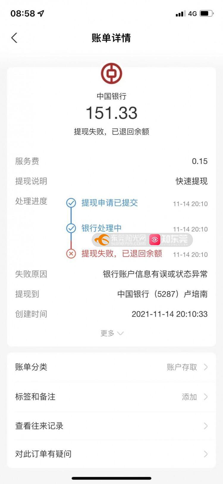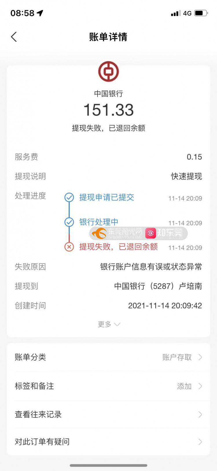 投诉中国银行东莞长安长中路支行