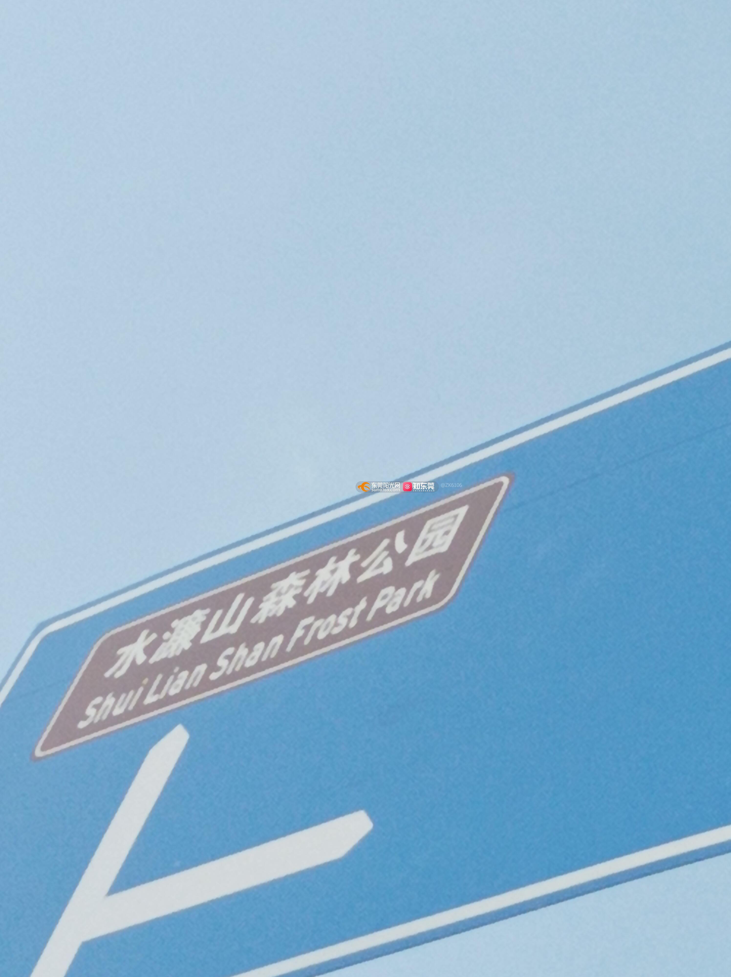 东莞市南城街道水濂景观路与水濂山路交叉口东侧,翡丽山幼儿园北侧,靠近水濂小区的一个蓝色标志牌上写的水濂山森林公园,英文名有错误,Forest park写成了frost park,森林公园的意思成了霜冻公园,对外国友人来说不太合适