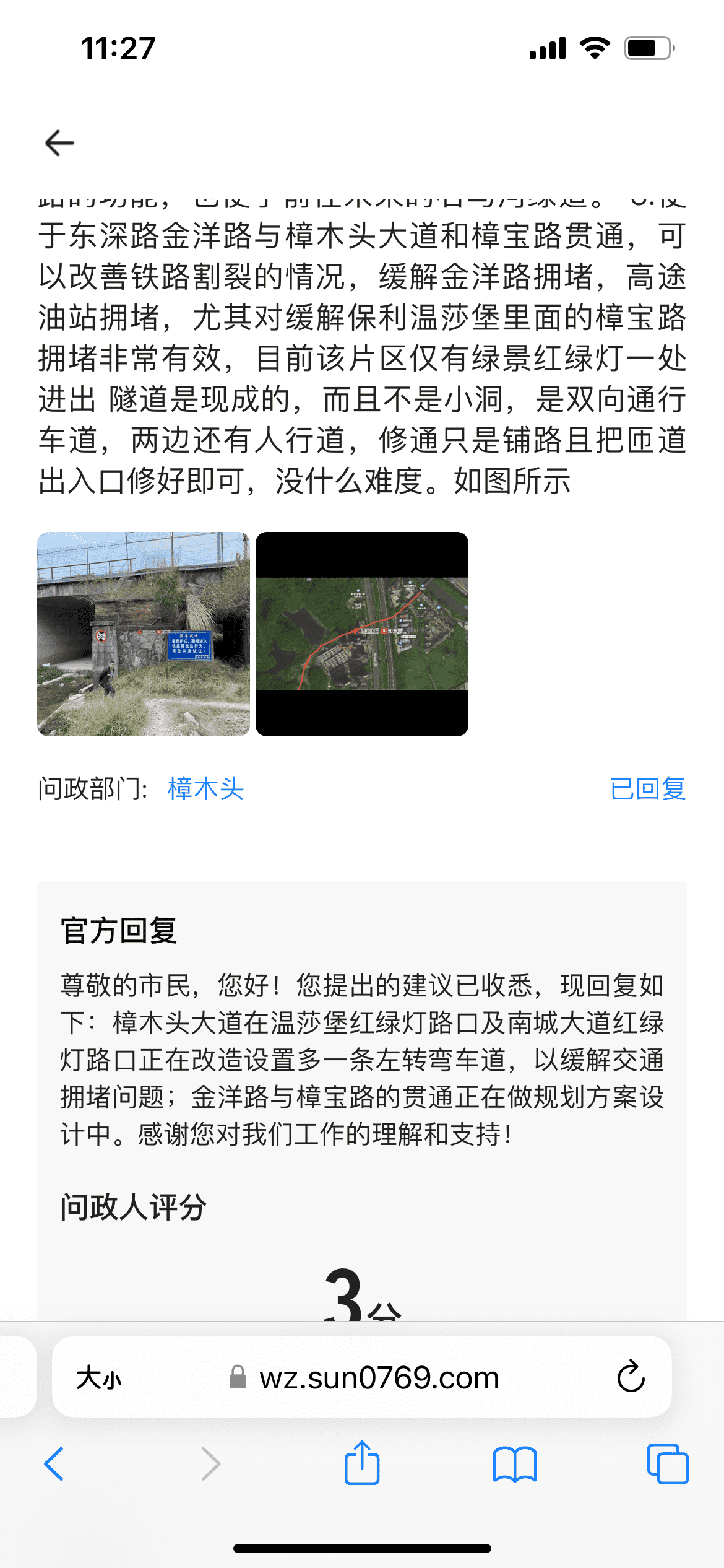 当时买房的时候开发商说小区有生活配套,有掉头通道,现在下区交房一年多了什么都没有? 1)小区生活及其不方便,周边没有小店,连买包盐都要到保利佐邻超市这边,旁边建了几个小房子说是生活配套 可是到现在没有任何动静 2)坐公交车及其不方便,请问我们家老人家怎么坐公交去镇区,之前有业主反映过,你们回答让人哭笑不得, 让人走路到保利红绿灯处去坐,你不如让其走路去镇区好了 3)我们工作在塘厦生活在樟木头的新莞人,每次从塘厦回家要到樟木头大道尽头等红绿灯再掉头,确实不方便,之前反映过, 后面加了一个左转车道,为什么不搞个掉头路口?买房的时候忽悠我们说附近有掉头隧道,订房时也看了附近确实有预留通道的标示牌, 也在阳光问政平台上看到官方回复会修建连接金洋路的隧道及掉头路口,可是后面政府回答让人很失望,后面一会儿说建一会说不建 (就跟建樟木头一中一小一样),都不知道政府有没有公信力了?