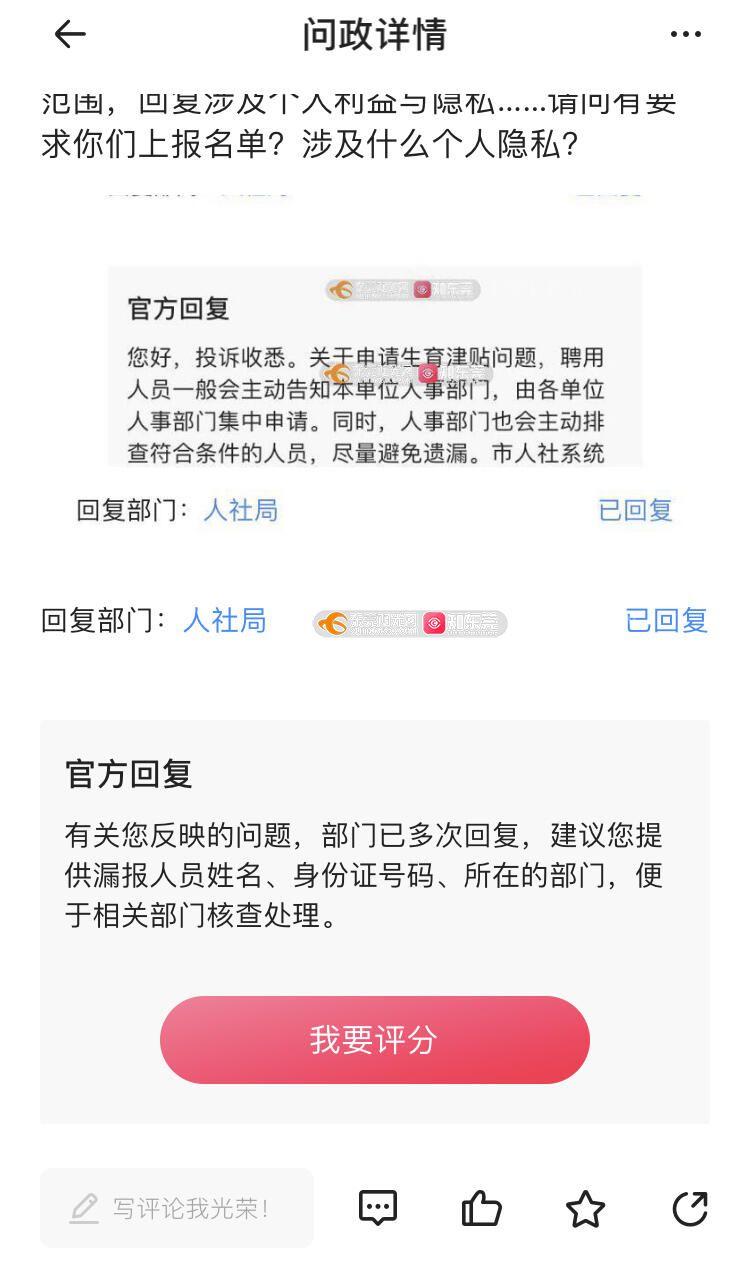 问政回复要求提交个人信息就不算涉及个人隐私了?漏报名单范围:2019年1月1日至2020年7月31日,聘员,东莞市人力资源和社会保障局。麻烦有关部门去核实所有符合生育津贴申报的漏报名单。