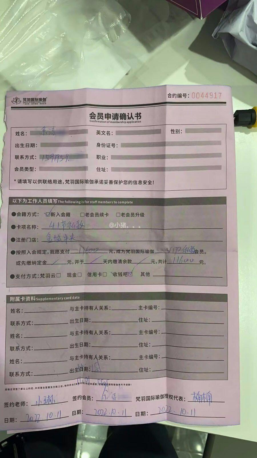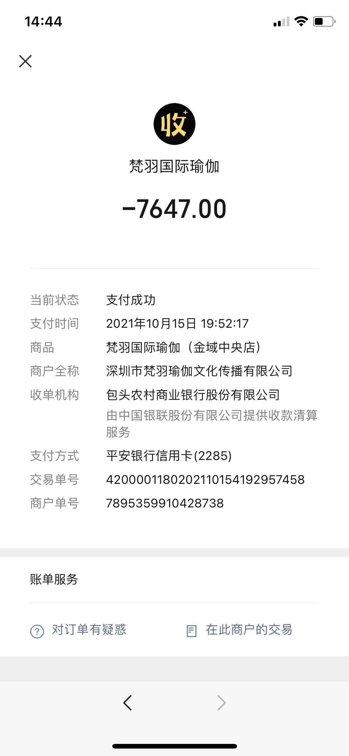 1.本人于2022年10月11日在梵羽国际金域中央店(东莞市黄金路809号金域中央7号楼6-8号商铺)购买了瑜伽课总价41节课,花费11600元,后面陆陆续续上了几节课就因为疫情原因没去了。2022年10月-12月全国疫情严重到处封路,本人按照当时的防疫政策要求尽量不要走动,所以就没去消费课时。2022年12月底疫情开放后,本来还有时间可以去上课的,后面瑜伽馆就发通知说要放假一个月到2023年1月28日,导致我的课时迟迟无法上,现在到了2023年3月本人已经离开东莞市且不在珠三角发展了,合同上面解约有违约金本人也不认可,因为是不可抗力原因。基于本次不可抗力疫情因素给本人退款10185元(已经上了五节课) 2.2021年我还在梵羽国际金域中央店(东莞市黄金路809号金域中央7号楼6-8号商铺)办理了一个高级瑜伽班总共花费了9999元 3.2023年4月我在阳光网投诉过一次商家跟我协商要扣我30%的手续费,上述两个套餐除去手续费总共退我14129元我认为不合理,违约金合同属于霸王条款,签署的时候也无明确跟我声明过这个事情,现在我没有消费我要求全额退款总计20184元