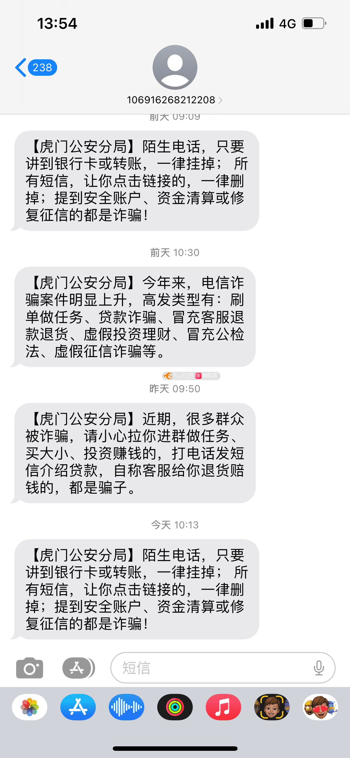 近期频繁收到来自市政公安单位电话提醒,防诈骗 注意人身财产安全。 意图是好的。但次数过度频繁 每天一次不分昼夜。 不管是上班还是下班,早上还是晚上。到从中午1点到晚上10点,都有可能收到来自于市公安机关的电话提醒。 是KPI也不能用这样的方式完成。 还请反映一下,已经严重影响到日常生活。