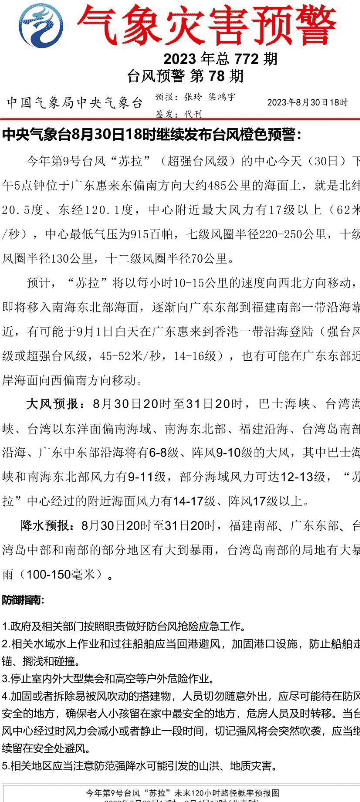 中央气象局30号下午18点发布台风苏拉升级为橙色预警,会登陆广东甚至达17级以上,东莞海德实验学校仍然发布开学通知,并要求正常返校。