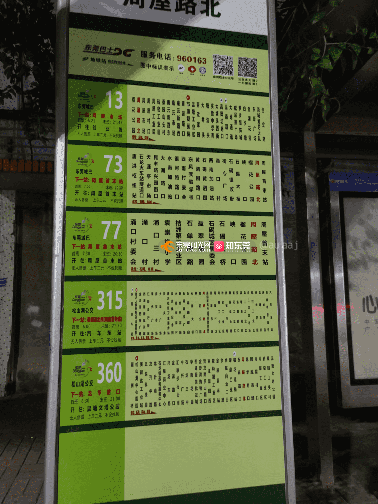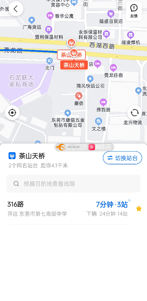 松山湖公交360线路八月份增停茶山天桥站后相关的问题 1、车来了APP并没有实时更新茶山天桥站的线路信息,目前最新查看只有316路,并没有发现360路,麻烦核实技术人员补充茶山天桥站线路信息 2、站亭线路信息更新不及时,目前只有石龙镇的站牌更新了茶山天桥站的停靠信息,而东城区和茶山镇(温塘文塔公园站至茶山路口站)站牌并没有更新,导致产生信息差,粘贴线路信息并不需要花费多少成本,初衷只是为了方便乘客乘车,麻烦核实站台信息,重新更新好线路信息!