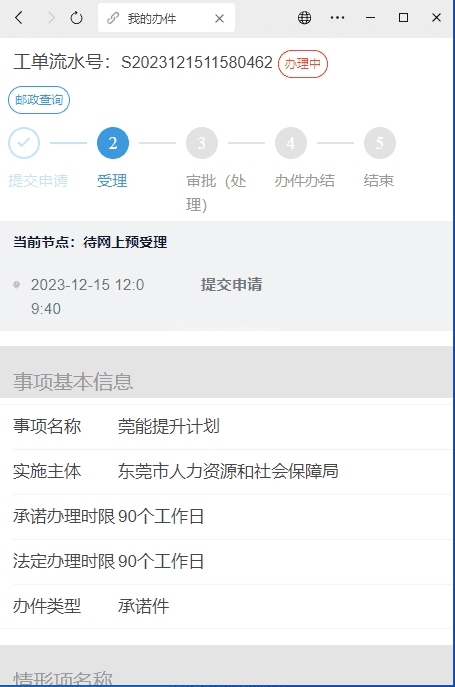 莞能提升计划申请我于10月19日提交资料后至12月15日要求补充广东省职称系统首页的“证书查询”栏目或东莞市人社局官网或“东莞人社”微信小程序核实查询验证结果截图。我于12月15日至网站重新上传,且到现在还未审核,请问是已经过了受理日期不能提交吗?审核时长大概需要多久?