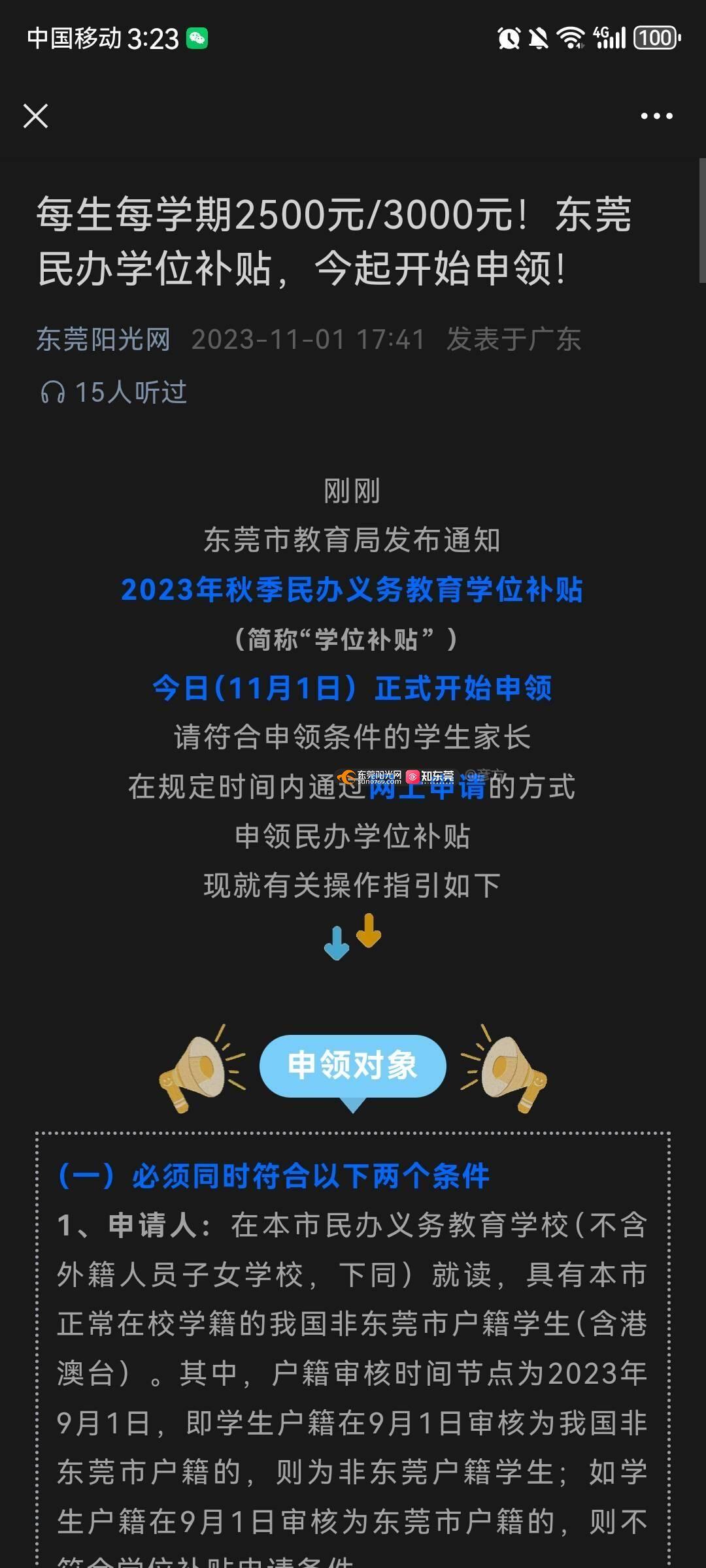 东莞阳光网发文:东莞民办小学补贴全部统一每学年5000元,但是2024年1约5日实际收到1857.5元,2023年7月27日收到1107.5元,想问一下是广东科技学院附属第一实验学校没在政府统一范围内吗?