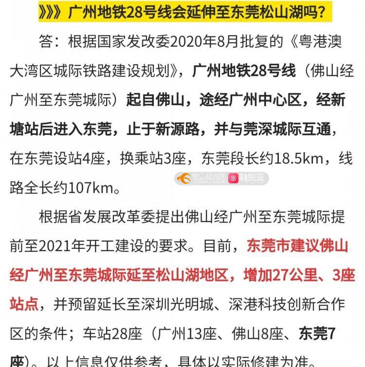 您好!来信收悉。现就您咨询广州地铁 28 号线东莞段推进情况 的回复如下: 广州地铁 28 号线(即佛山经广州至东莞城际)是广州市牵头、 我市和佛山市配合规划建设的城际线路,目前正在开展工程可行性 研究等前期工作。后续,我们将按政府信息公开制度规定及时公布 该项目进展信息。 感谢您对我市轨道交通建设事业的关注与支持!