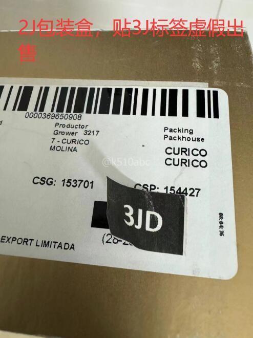本人于2月3日在东莞东城下桥水果市场,东城街道绿化路91号购买两盒2J两盒3J,共四盒车厘子。当天寄放于商家冻库,2月7晚提货,之后发现问题如下: 1、2月7日当晚发现其中一盒3J出现压烂痕迹部分果已经烂出水,2月8日前往档口找老板核实,非推脱是放冻库几天坏了的,请问车厘子冷链运输长时间不烂,2月3日购买后检查完好,偏偏放冻库就烂?放冻库会压烂?且购买的时候那个老板是说坏一个包赔,当天推脱不予处理。 2、2月8日晚检查两箱3J车厘子,存在弄虚作假,以次充好。其中一箱3J的,包装盒是2J的贴了3J的贴纸,涉嫌诈骗,虚假销售。 3、两盒3J的果大小几乎都是25mm,甚至铺在底部的更小,接近1J的大小。远未达到3J果30~31.9mm大小的标准。 以上三个问题,商家存在责任推脱、虚假贴标签出售、大小与售卖标称不符等问题,且怀疑为混装二次包装产品,均已留存相关图片证据。商家处理态度敷衍了事,以“拿货人贴的,他们也不清楚”等理由推脱,试问在水果市场做生意几年的,不需要对产品质量把关吗?由于相关商品已送他人,无法拿回实物,商家以此为由不予处理,请相关部门跟进处理,要求假一罚十。