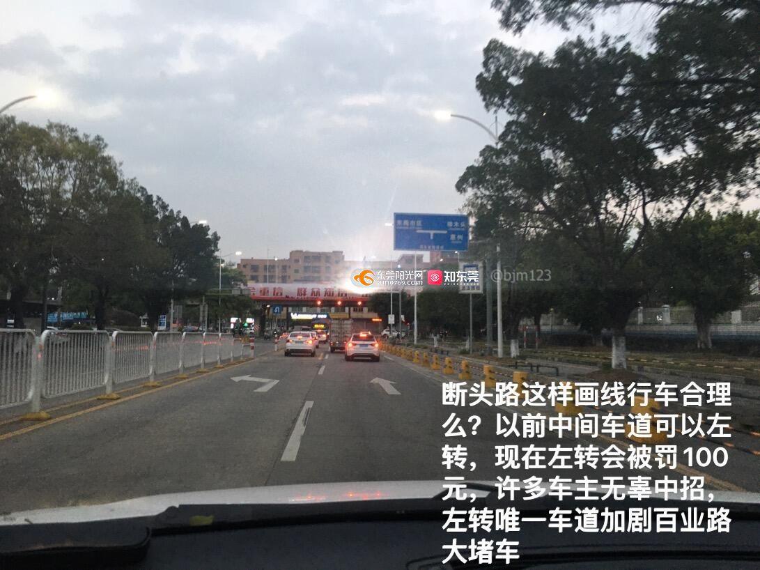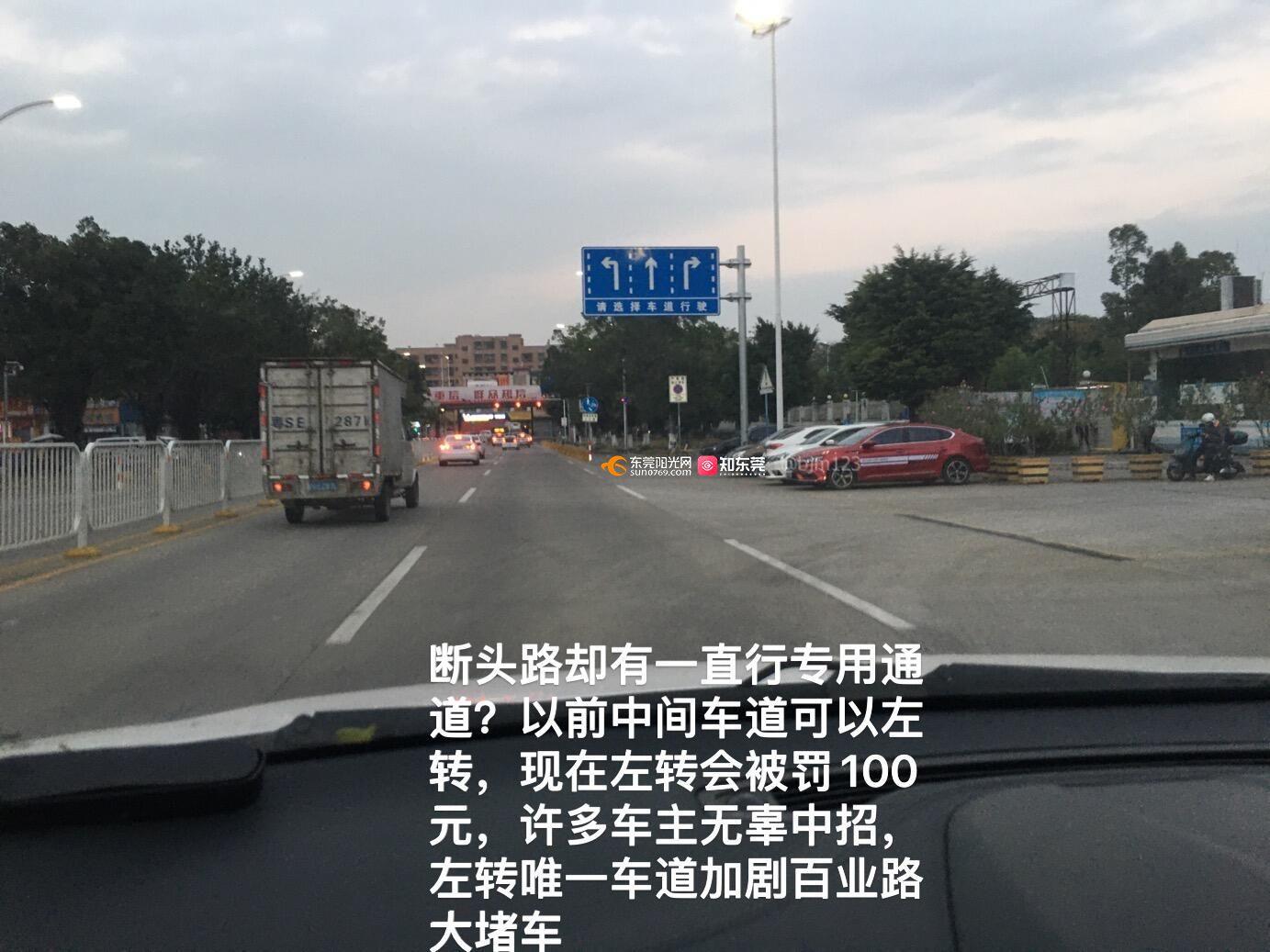 寮步百业路断头路左转道突然变直行,车主无辜被罚款,三车道的百业路人为变成一车道,莞樟路与百业路路口两车道变一车道,人为制造大堵车,寮步海关和汽配城附近的车主叫苦不迭,搞得*****人怨!