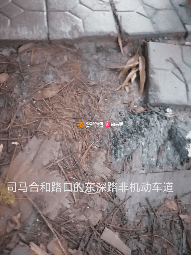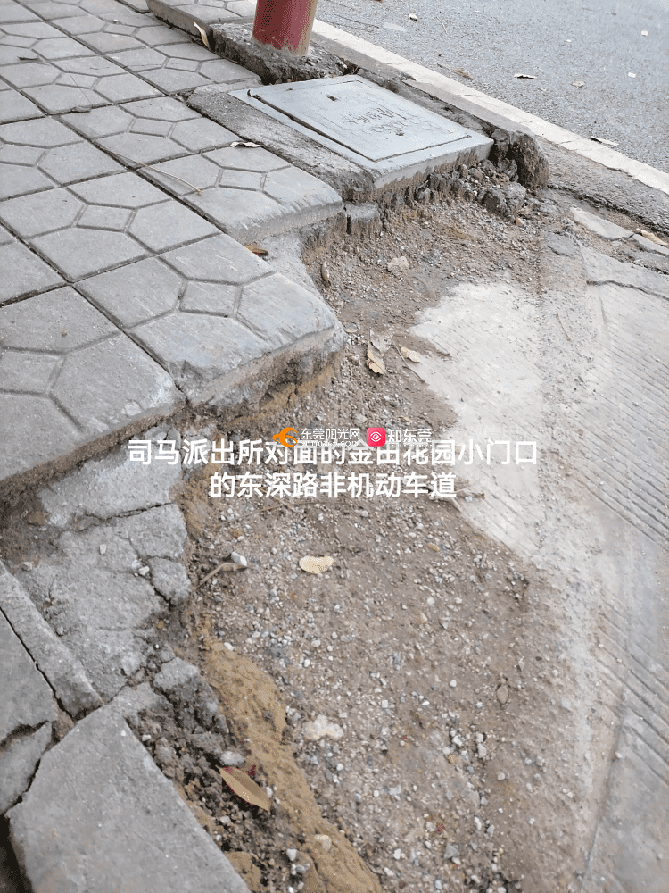 常平镇司马段东深路人行道非机动车道路口破烂,电动车轮胎小,很难骑上骑下,麻烦修路队在缝补其他路的时候,顺便带点水泥或沥青过来做成斜坡,方便无障碍骑行。 位置1:合和路口两边 位置2:司马派出所对面的金田花园小门口两边,谢谢