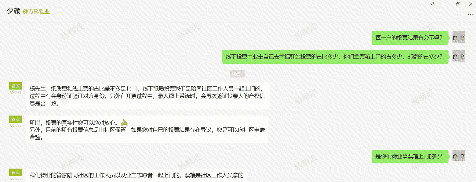 本人是东莞市莞城区万科运河东1号花园小区的业主,现就住建局网站公示的运河东1号花园住宅物业费上调的投票结果发现重大不合理不合规之处,现将情况反映如下: 2024年3月5日,住建局网站公布了《运河东1号花园关于住宅物业费收费标准上调的投票》的公告,主要内容如下: 表决事项:住宅物业费收费标准上调0.3元月平方米 投票时间:从 2024年03月05日 08时 到 2024年04月29日 12时 止; 投票采取线上投票和纸质投票相结合的方式。 2024年4月29日,住建局网站公布了《关于万科运河东1号花园初步投票表决结果的公示》,其中关于表决事项“住宅物业费收费标准上调0.3元月平方米”的投票结果显示,已投票人数1541人,其中线下纸质投票人数665人,占已投票总人数的43.15%,该比例明显偏高,在东莞开通业主投票的电子投票通道后,因电子投票的便利性、唯一性、权威性(业主只需在微信上操作,可快速完成身份验证、投票的操作),电子投票已经成为绝对主流,经查询住建局网站公布的投票结果,线下纸质票的比例基本都不会超过10%,相比之下本次投票线下纸质票占比明显不正常,对此本人询问了物业管家,管家回复线下纸质票是物业管家陪同工作人员携带投票箱上门取得(有聊天记录截图为证)。 基于上述事实,本人提出如下异议: 一、本次投票涉及上调物业费,物业管家作为利益相关方陪同工作携带票箱上门找业主投票,为业主投票期间物业干预业主投票提供了便利,物业作为利益相关方没有按照回避原则进行回避,本次投票过程存在重大瑕疵,明显不合规之处,本次投票已缺乏法律效力。因此,请相关部门判定本次投票结果为无效,并重新组织投票,重新投票应禁止携带票箱上门拉票的行为,更应禁止物业陪同工作人员出现在投票现场干预投票。 二、本次投票为何会允许携带票箱上门的投票方式,众所周知,票箱一旦移动,很难做到全过程监控,为投票造假和操纵创造空间,期间竟然允许物业管家陪同工作人员上门,为物业干预业主投票创造机会,本次投票组织者存在严重失职行为,请相关部门对投票组织者是否与物业方面存在利益关联进行调查; 三、本次投票时间接近两个月,明显过长。经查询住建局官网,有关业主投票的事项投票时间一般为一周,至多两周,本次超长的投票时间明显是有利于物业方面的,投票组织者作为如此有利于物业的安排,是否于法有据,是否存在利益输送,请相关部门彻查。 四、请相关部门就线下纸质票比例过高的异常情况进行其他必要调查。 五、请相关部门敦促投票组织者公示包含每一户投票结果的明细数据,以便业主进行进一步核查。