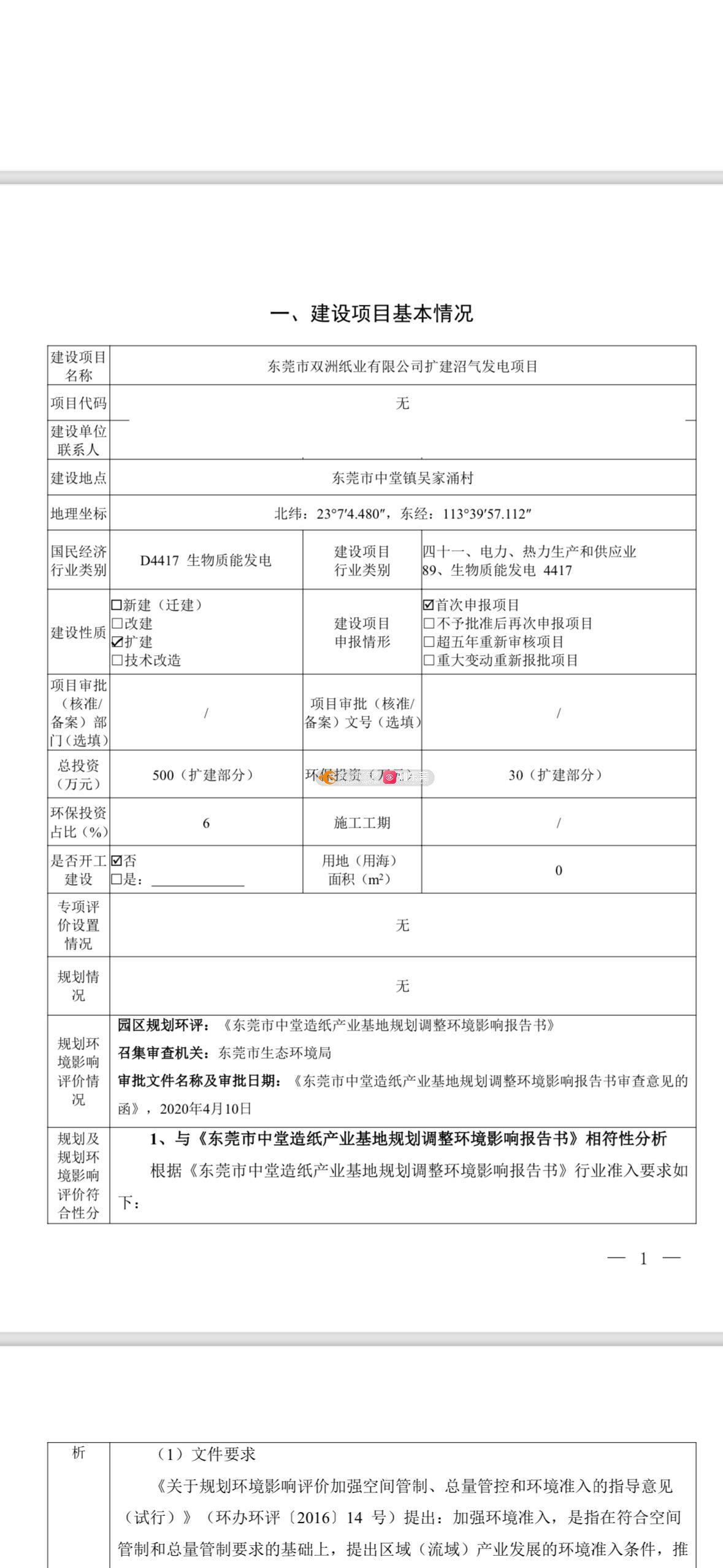 尊敬的市民,您好!您反映的问题已收悉,现回复如下: 一、基本情况 东莞市双洲纸业有限公司位于中堂镇吴家涌村(简称“双洲纸业”),成立于1987年,已领取营业执照,已办理环保相关手续,已领取排污许可证,主要从事瓦楞纸生产,设有5条造纸生产线及相关设备,已配套废水、废气治理设施及安装在线监控系统。 二、核查处理情况 经核查,2023年7月12日,我局现场检查及调查发现该单位未经生态环境主管部门重新审批同意的情况下,擅自新建沼气发电机组项目,已开工建设,正在建设地基,我局执法人员现场制造双笔录;2023年7月27日复查时,该建设项目已停止建设。该单位上述行为违法了《中华人民共和国环境影响评价法》第二十二条第一款“建设项目的环境影响报告书、报告表,由建设单位按照国务院的规定报有审批权的生态环境主管部门审批”和第二十五条的规定“建设项目的环境影响评价文件未依法经审批部门审查或审查后未予批准的,建设单位不得开工建设。”的规定。依据《中华人民共和国行政处罚法》第三十三条关于“违法行为轻微并及时改正,没有造成危害后果的,不予行政处罚。初次违法且危害后果轻微并及时改正的,可以不予行政处罚······”、《广东省生态环境行政处罚自由裁量权规定》第十三条第三项关于“(三)初次违法且危害后果轻微并及时改正的,可以不予处罚;符合《广东省生态环境不予行政处罚的轻微违法行为目录》情形的行为不予处罚。”和《广东省生态环境不予行政处罚的轻微违法行为目录》第4项的规定,我局决定对该单位不予行政处罚。 该单位于2023年8月21日首次向市生态环境局报批《东莞市双洲纸业有限公司扩建沼气发现项目环境影响报告表》,市生态环境局于9月8日作出不予审批的决定。9月15日,双洲纸业再次报批该项目环境,市生态环境局于10月13日作出不予审批决定。根据《建设项目环境影响报告表编制技术指南(污染影响类)(试行)》规定,报告表需表明厂界外500米范围内的环境保护目标,对500米范围外的敏感区暂无要求。结合群众反映的情况,下来,市生态环境局将要求项目结合实际情况,深化环评评估,进一步核实周边住宅小区情况,把住宅小区纳入环境保护目标进行评价分析。 如有疑问,请联系中堂生态环境分局执法股,联系电话:88111366。感谢您对我们工作的理解和支持!承办单位:东莞市生态环境局中堂分局。