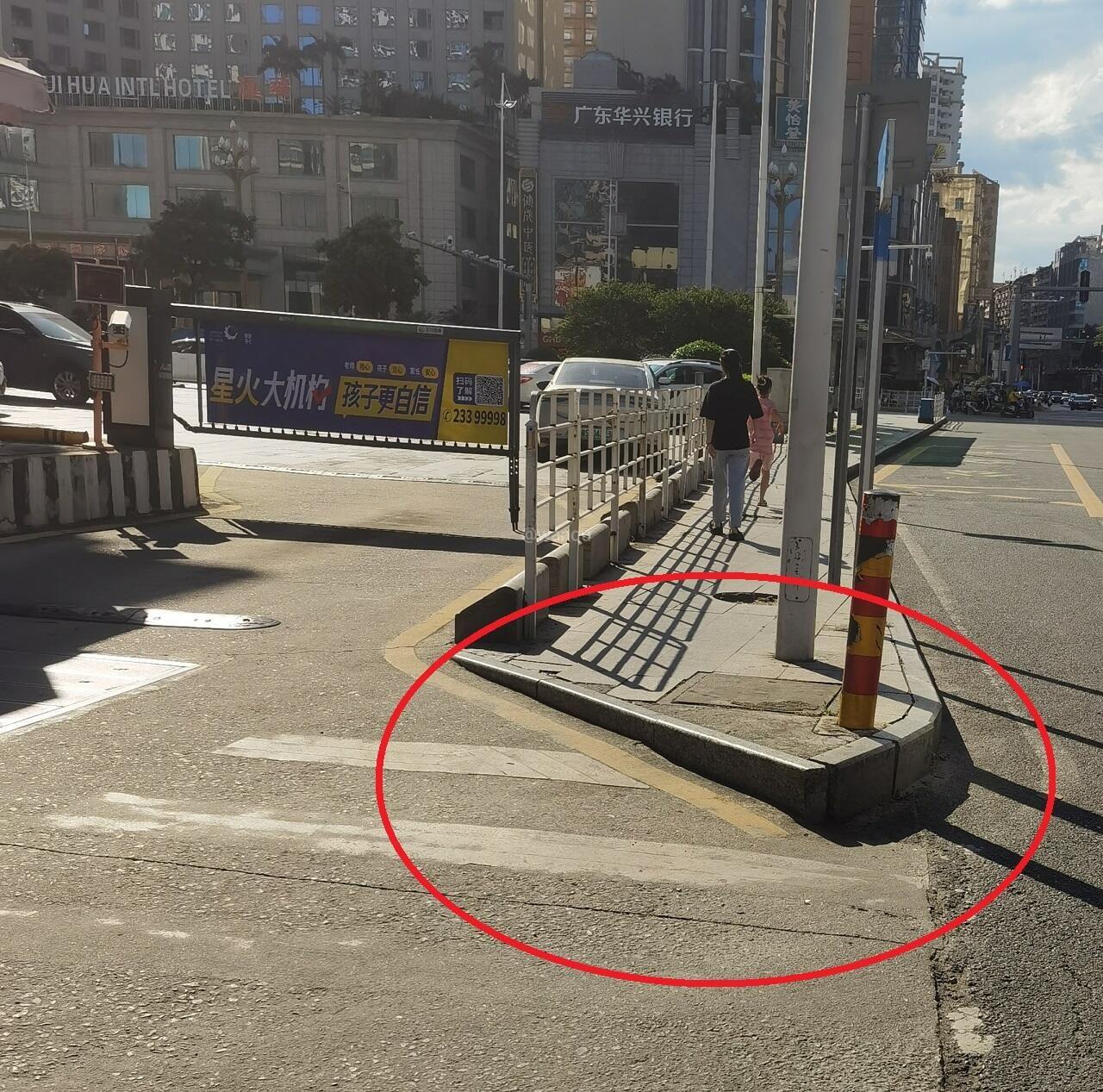 常平镇金汇大厦天虹旁人行道台阶没有斜坡,导致电动车被迫走下面汽车道,交警经常会在这个路口抓电动车,市政都没有把该处人行道斜坡修好,让电动车怎么走人行道呢?请把该处人行道台阶做个斜坡。
