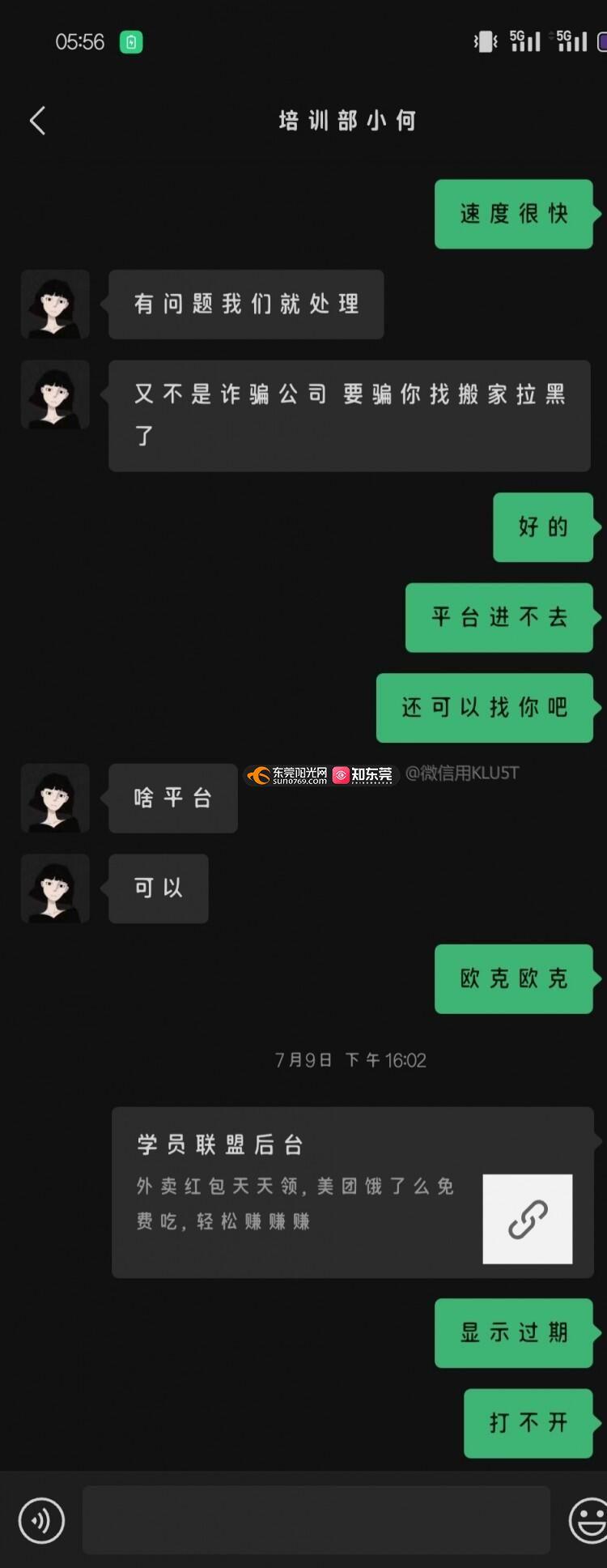 广东氤教学堂科技有限公司(注册地址:广东省东莞市南城街道新农路27号1栋2073室),这个公司先是让我交了9.8的报名费,然后分配一个男的介绍平台外卖操作,此时说要付996进行平台搭建,搭建完就有钱了,我付了,后面叫我加了一个业务,然后以加的人数过多为由让我删了他。新的业务老师发了很多话术后又开始叫我办证,说不办证后续赚不到钱,这算诱导软强制性办卡吧,且我付了后面并没有用到这个证,再这之后她又说要交4680的引流费,虚假宣传,说日入200+,月入5000+,说有多挣钱,如果不感兴趣可以退款。于是这个4680我也付了,因为他们的意思就是这个钱不付,前面的也不退。但是现在走流程却一拖再拖,一会儿说要预热得7天,一会儿说前期都这样没收益正常,一会儿又说得调整等3天,业务老师态度非常恶劣,问问题不咋回答,爱答不理,叫她拿出证据证明其他学员赚钱的真实性,也没拿出来。现在快一个月一点效果都没有,问她她说要上报领导等领导审批才能退钱,并且我已经了解到很多他们公司的学员的退款他们都置之不理不退款,现在搭建的平台打不开,显示服务到期,我的诉求是退还996+698=1694的费用,发消息不回,诈骗公司