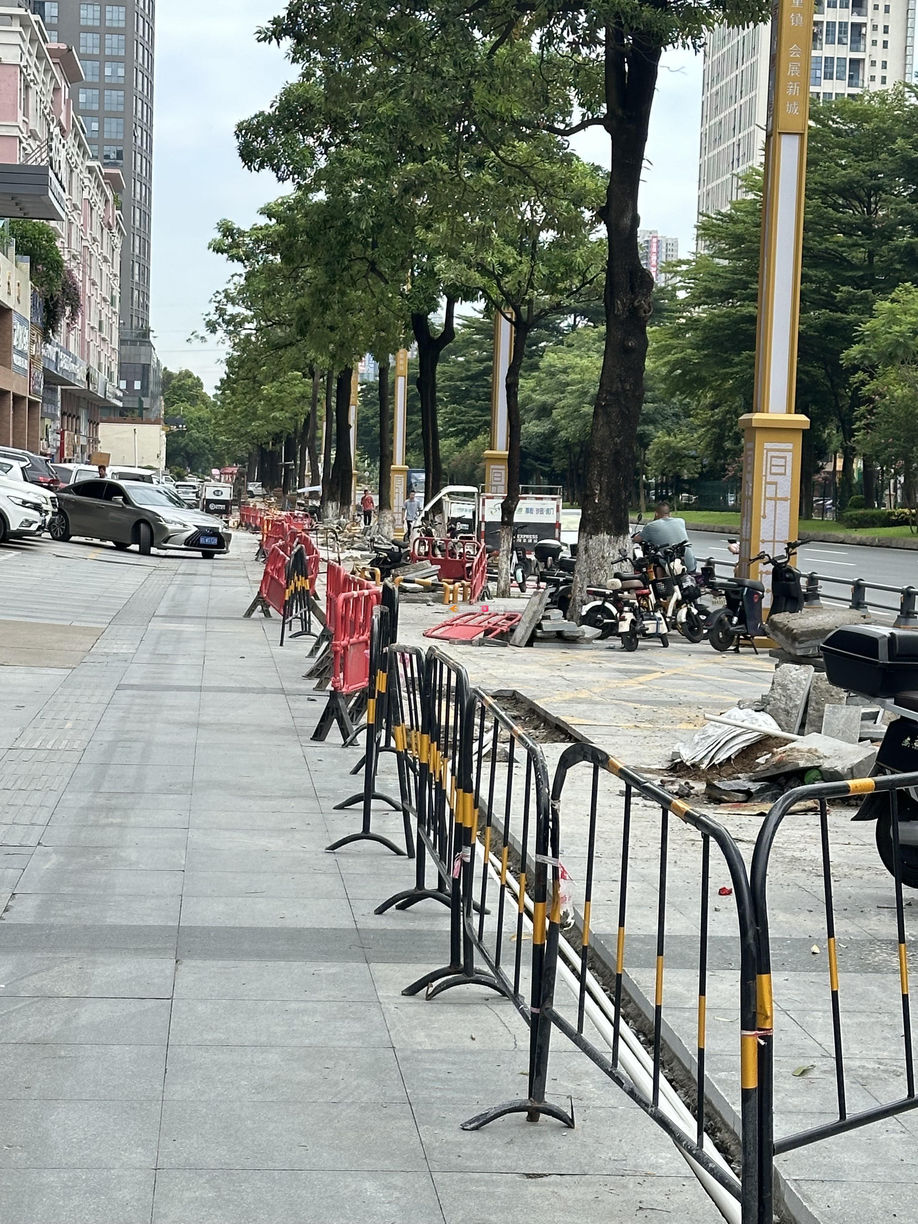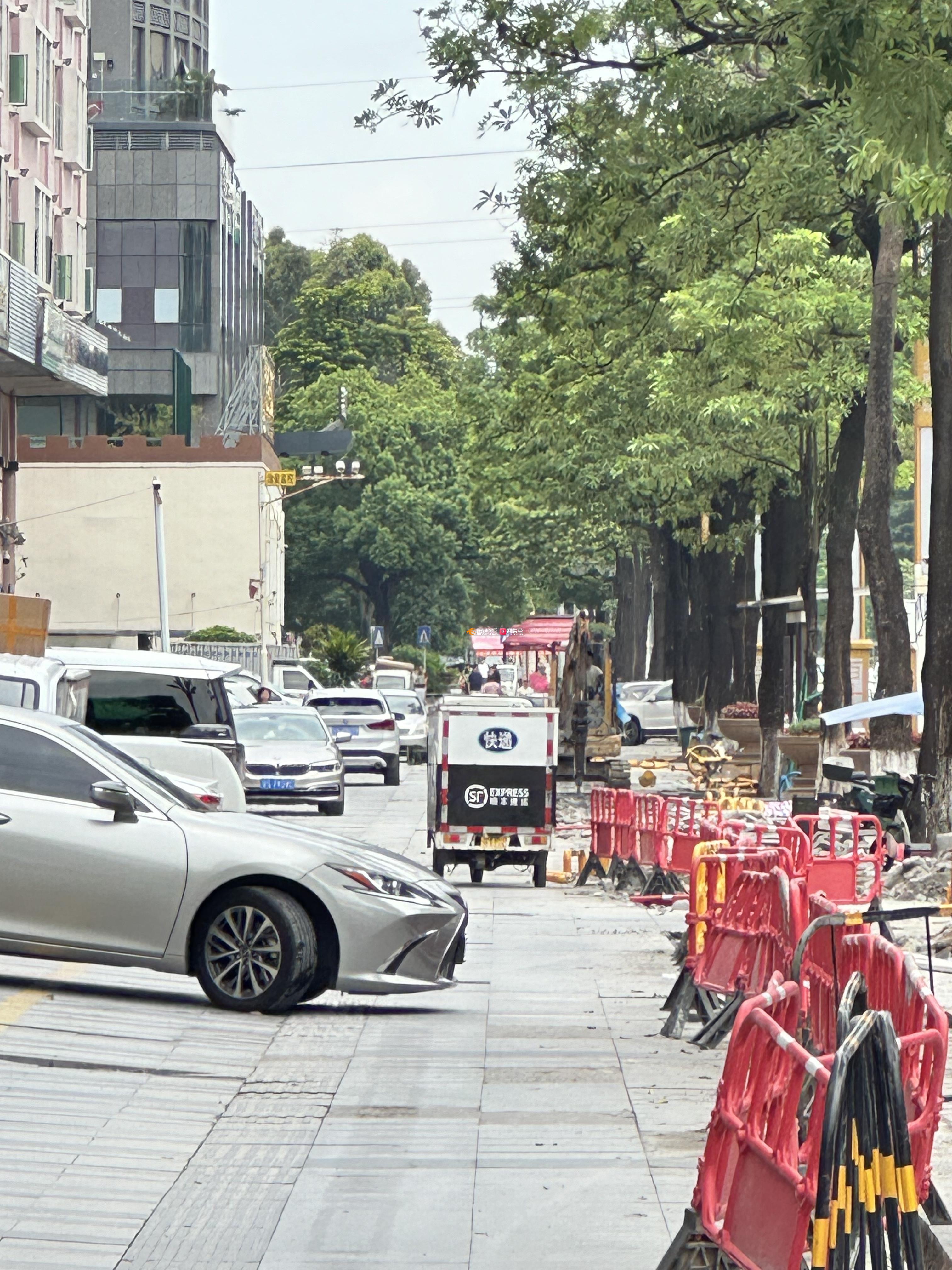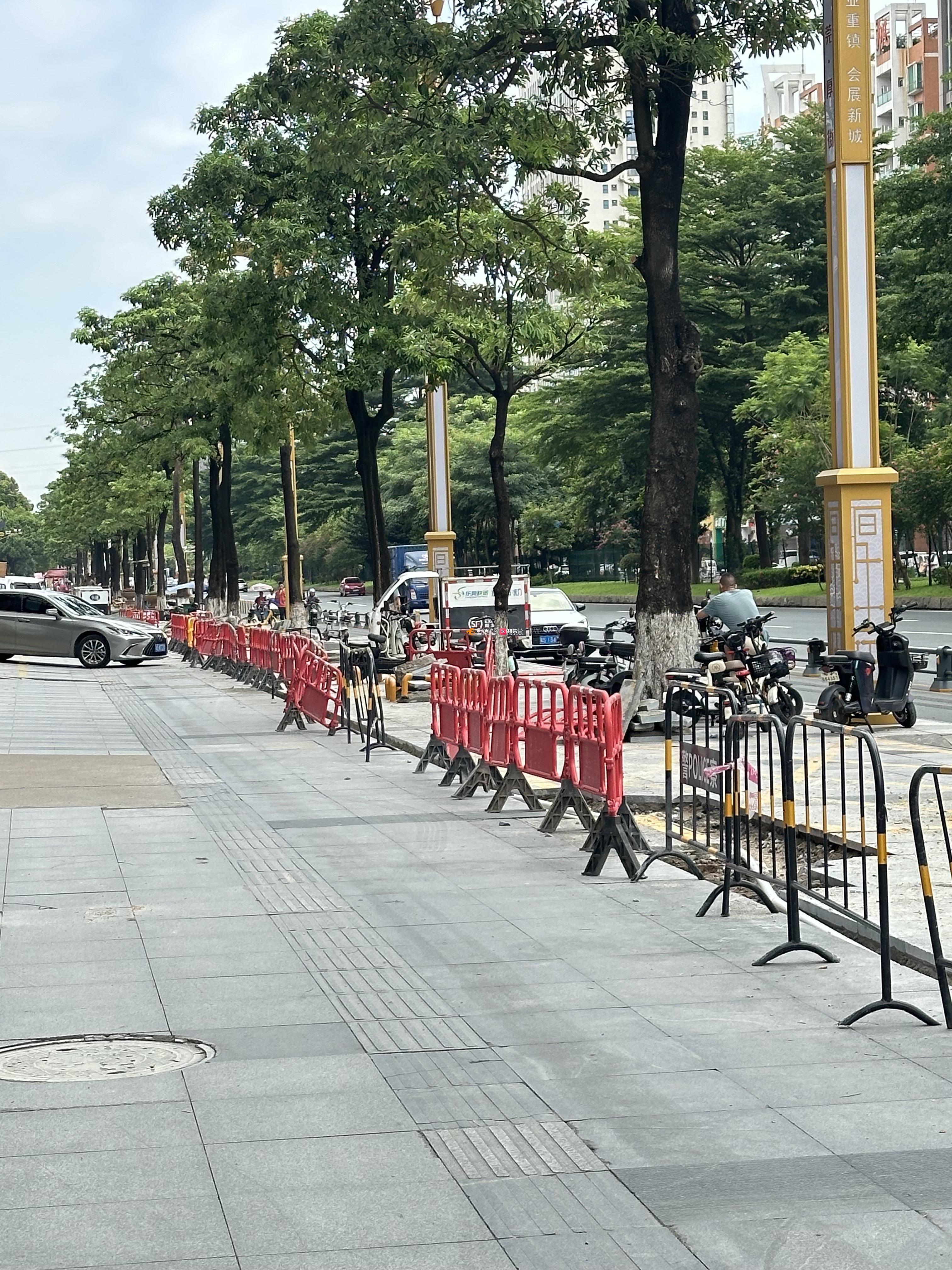 厚街大道旁整个路段都加装护栏,而且还只有少数的路口给机动车进去,现在又有路面施工,唯一的入口都不能进!