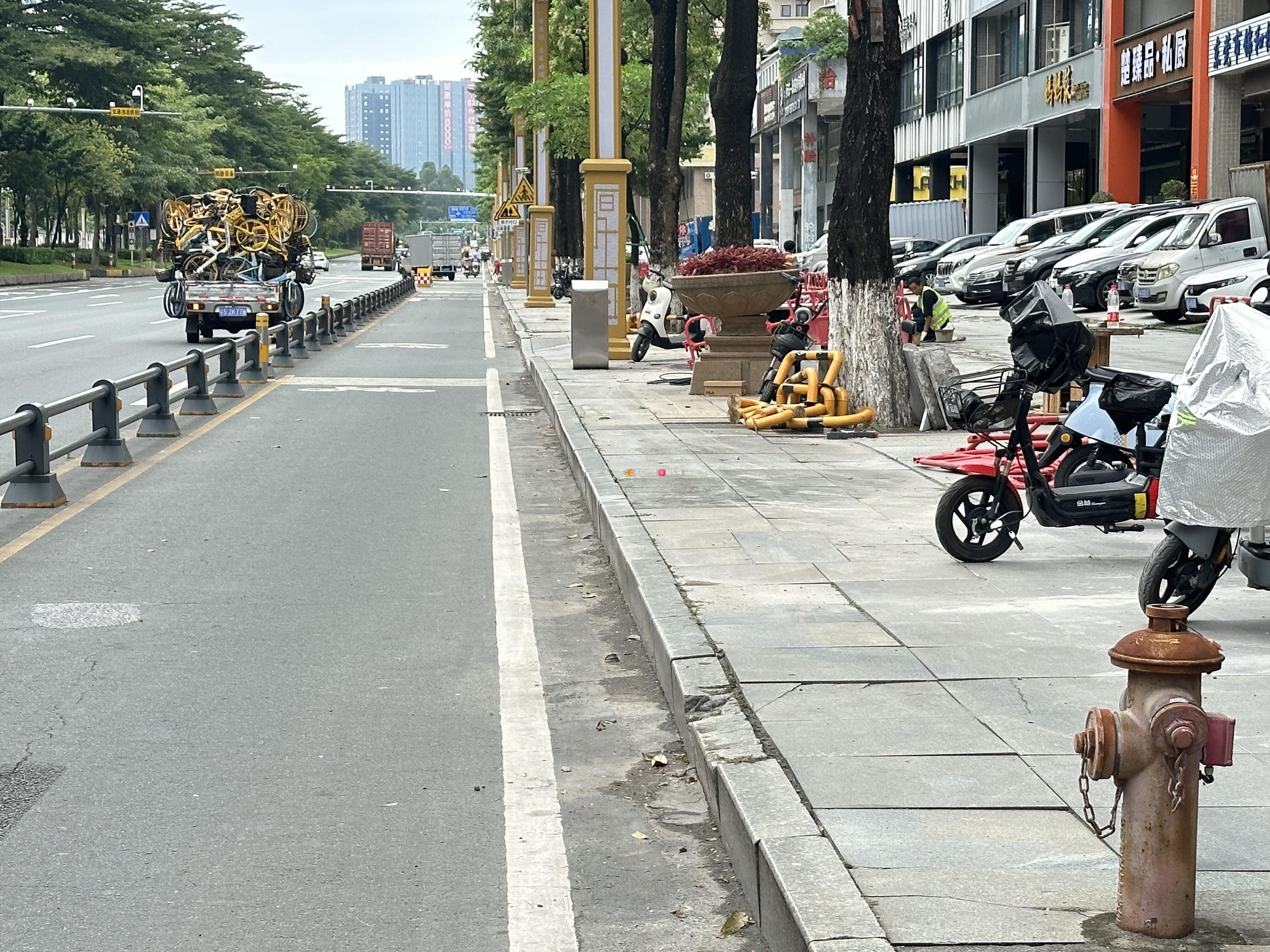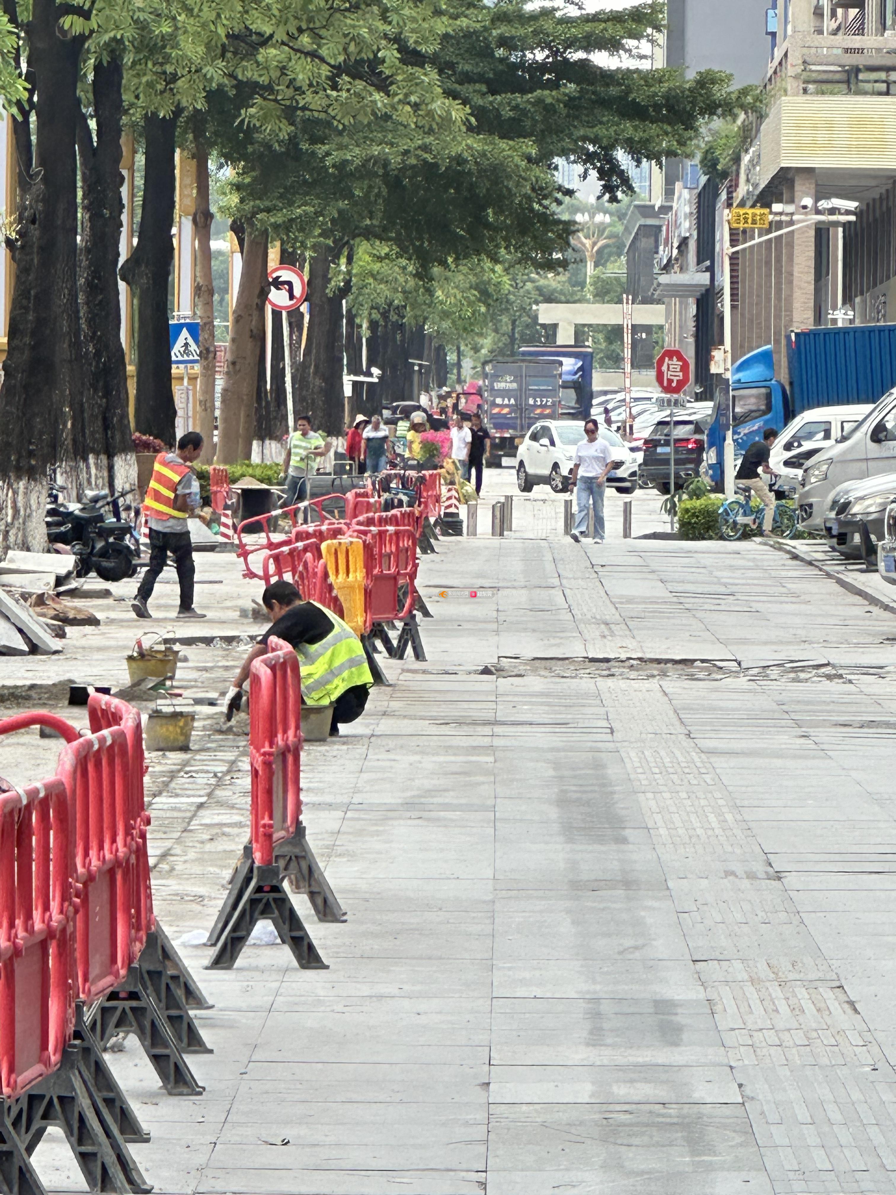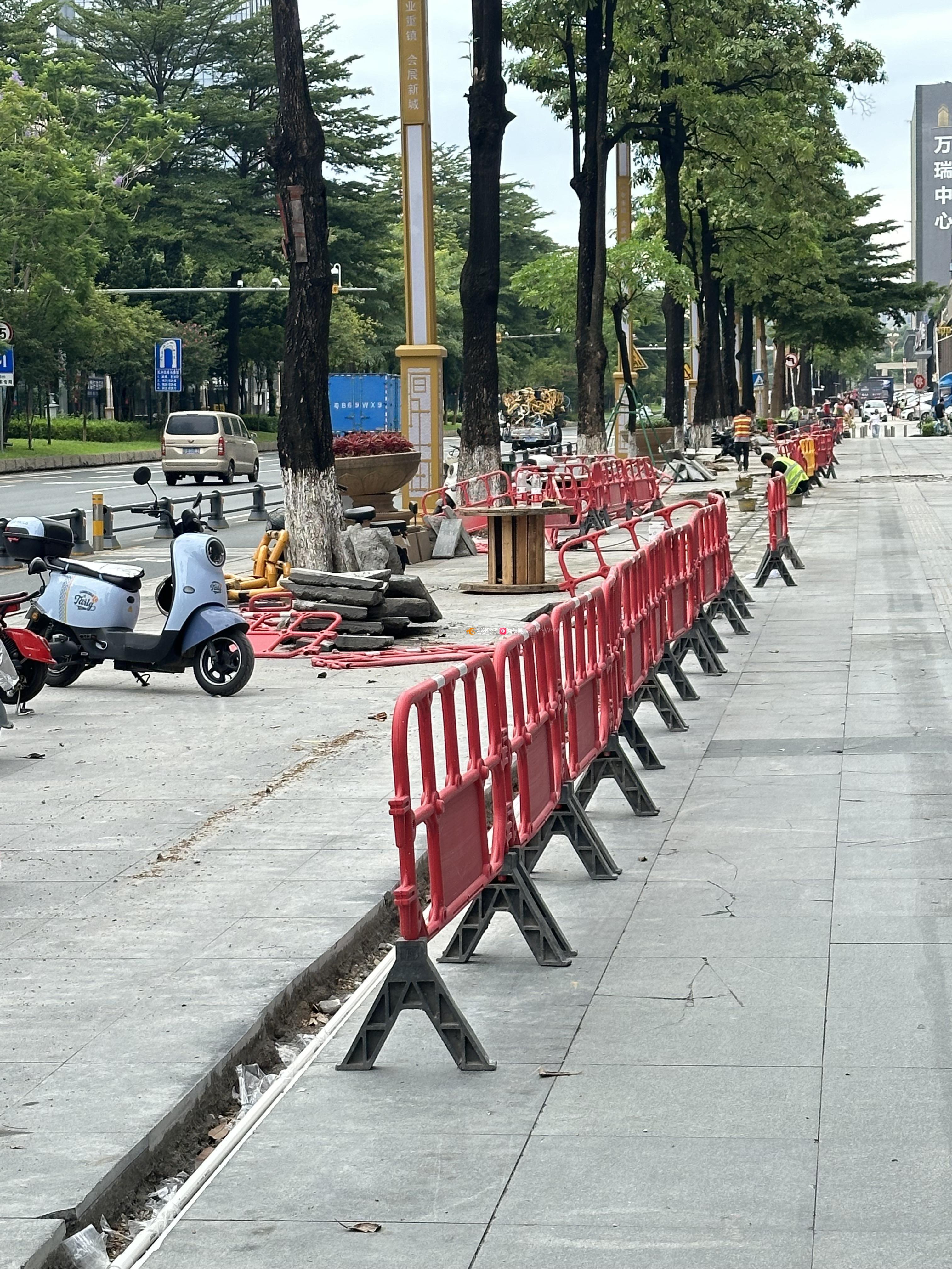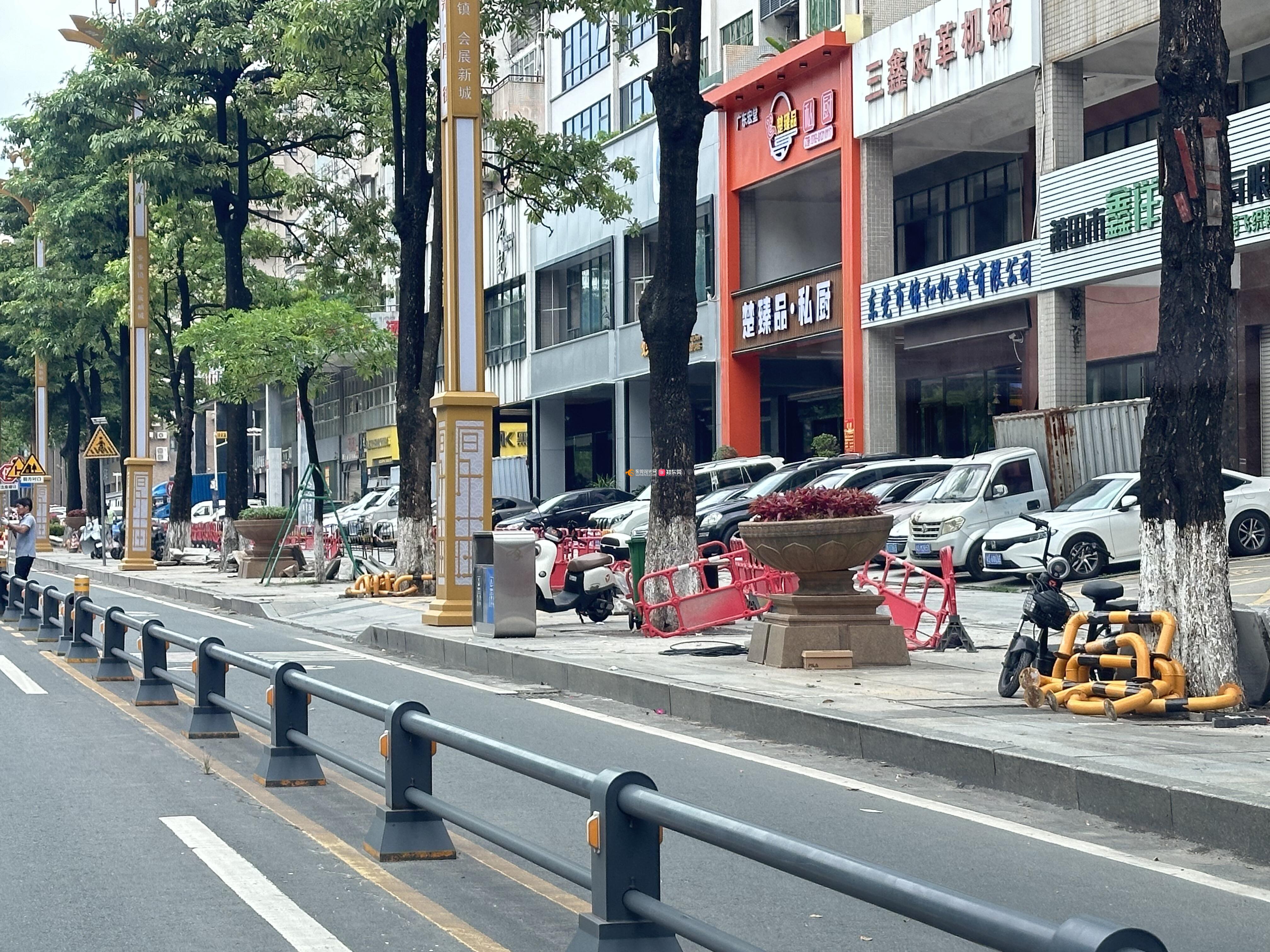 厚街大道旁整个路段都加装护栏,而且还只有少数的路口给机动车进去,现在又有路面施工,唯一的入口都不能进!