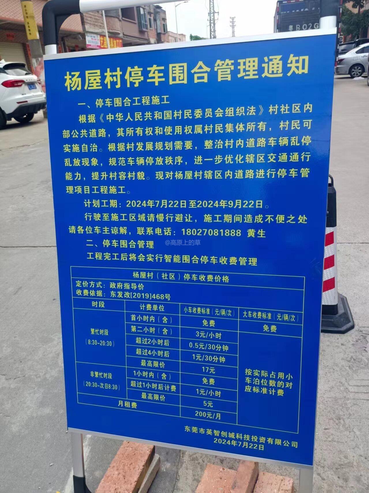 第一:企石杨屋村围村收停车费为什么会围到东江豪门小区外围来?东江豪门外围与杨屋村隔着一条马路,怎么证明该地块是属于杨屋村的?请拿出东莞国土自然局土地出让给东江豪门的规划图或者经纬图,一一对照划分 第二:按杨屋村规划,围村收停车费围到离小区只有4米,请问企石城乡规划局,这是合法合规?小区不需要留规划路。杨屋村围村收费,东江豪门业主管不着,但是围到东江豪门小区来了。如:图片1,收费进口,这一块地方是属于杨屋村的?还是属于市政道路?本身没有车道入口,又增加了车道入口,有市政道路规划公告? 这围村收费,就是杨屋村伙同东江豪门物业对小区全体业主的压榨。小区本身车位比都没有达到1.5