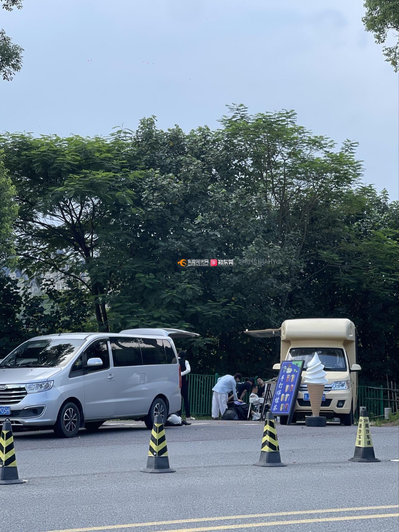 这位置是松山湖风景区华为溪流背坡村m区康桥的位置…这唯一能停几分钟车拍照的地方给摆摊的长期罢占~先不说这食品安全的问题最严重的是车有时还停上绿化带上到处是垃圾还有他们随地倒的茶汤…已经投诉过几次了只有保安过来叫收拾下他们拍个照等保安走了他们又继续摆摊完全没有城管过来整治的每天上下班经过都能看到