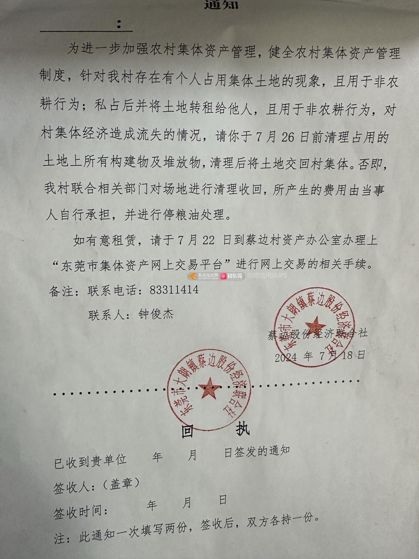 本人86年就来到大朗,于2005年与大朗镇蔡边经济联合社签订租赁合同至今 原本协定到期涨租让原租户续租 中途却临时改为在平台上重新投标? 导致最终竞标成交价与底价相差数倍。在这经济大萧条时期,让我们这些在这里扎根大半辈子的基层如何生存下去!最初租下时是一片空地,而后所有设施水电皆由我们自己搭建。现如今强制让我们签下霸王条约,要求我们无偿按现状移交给蔡边经济联合社,并且不以任何形式理由要求蔡边经联社支付任何补偿或赔偿。 据蔡边经联社通知,此次上平台重新投标是因存在个人占用集体土地现象,并将土地转租给他人。我们并不符合这一现象,为何我们也要重新上平台投标? 希望有关部门给出合理解释!