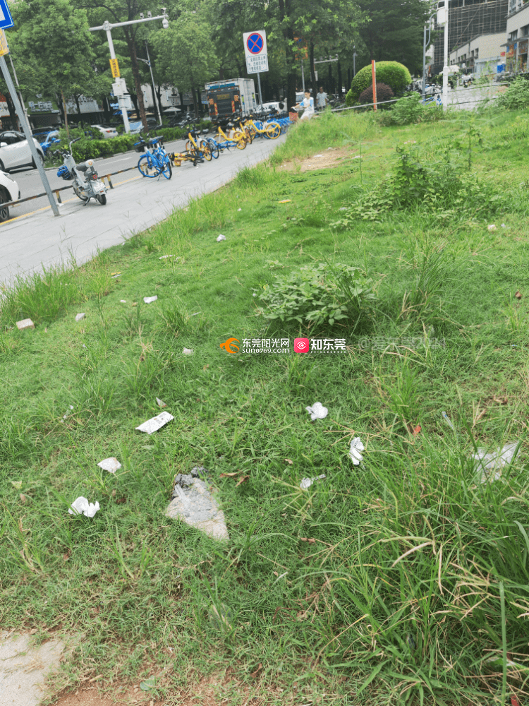 圃锦路绿化带垃圾污染,绿化带被破坏