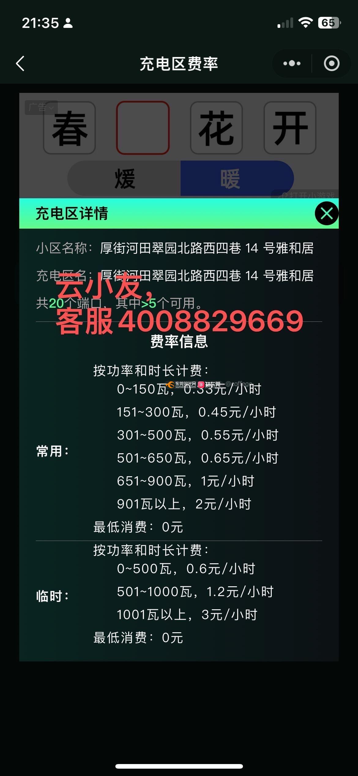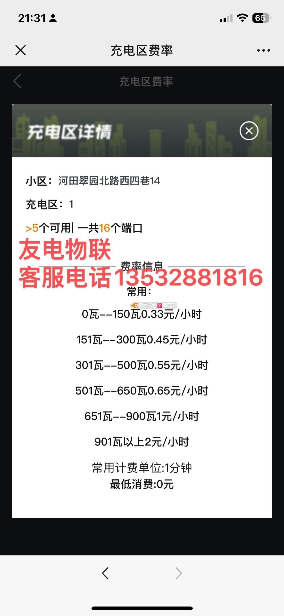 地点,河田翠园北路西四巷14号雅和居。这里有两家充电桩公司,云小友和友电物联,我们充电使用的是我们业主的公滩的电力,然后翻了3.5倍的价格卖给我们。就是说拿我们自己的电,经过他的插孔就翻了3.5倍,从本身0.71每度电,翻到2.6元一度卖给我们。价目表如图,市面价也如图,足足比正常价贵了。可以让他们赚点钱,毕竟他们提供了计费器,但不能太离谱,故我们要求调到市面价0-150瓦档调到0.2元(这已经1.5-1.8元每度)。对应其价目表0.33调到0.2,0.45调到0.3,0.55调到0.4,0.65调到0.5,1元的调到0.8,2元的调到1.2元。如果不能答应调整收费,那么请他们离场。