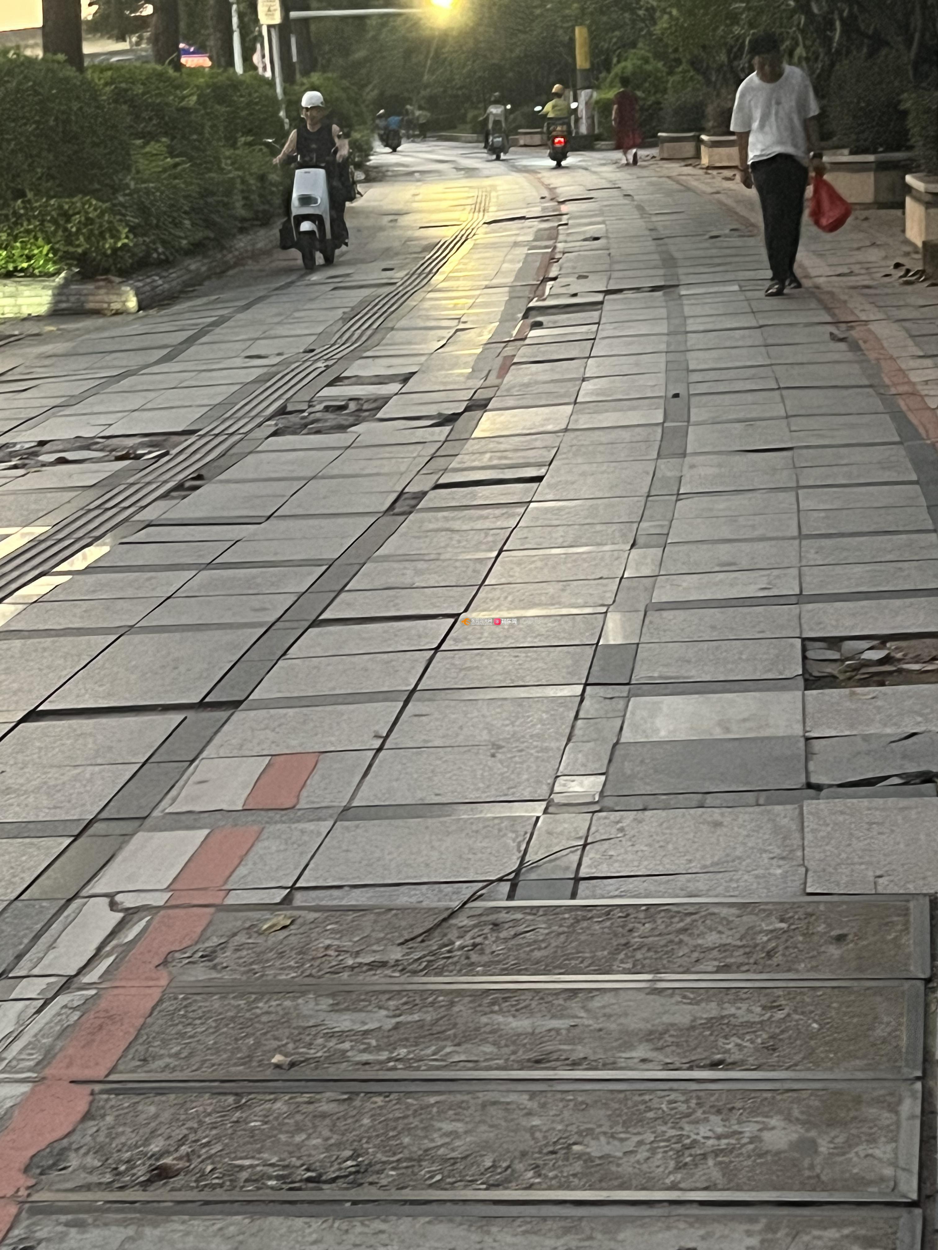 尊敬的市民,您好!您反映的问题已收悉,现回复如下: 收到您反映的情况后,我分局执法人员于2024年10月8日10:33致电您了解情况,您未接听,并于11:15对诉求进行现场核实。经查,情况属实。我分局已督促公用事业服务中心对您反映的人行道损坏问题制定维修方案,并加快维修。 如有疑问,请联系常平城管分局,联系电话:0769-82209028。感谢您对我们工作的理解和支持!