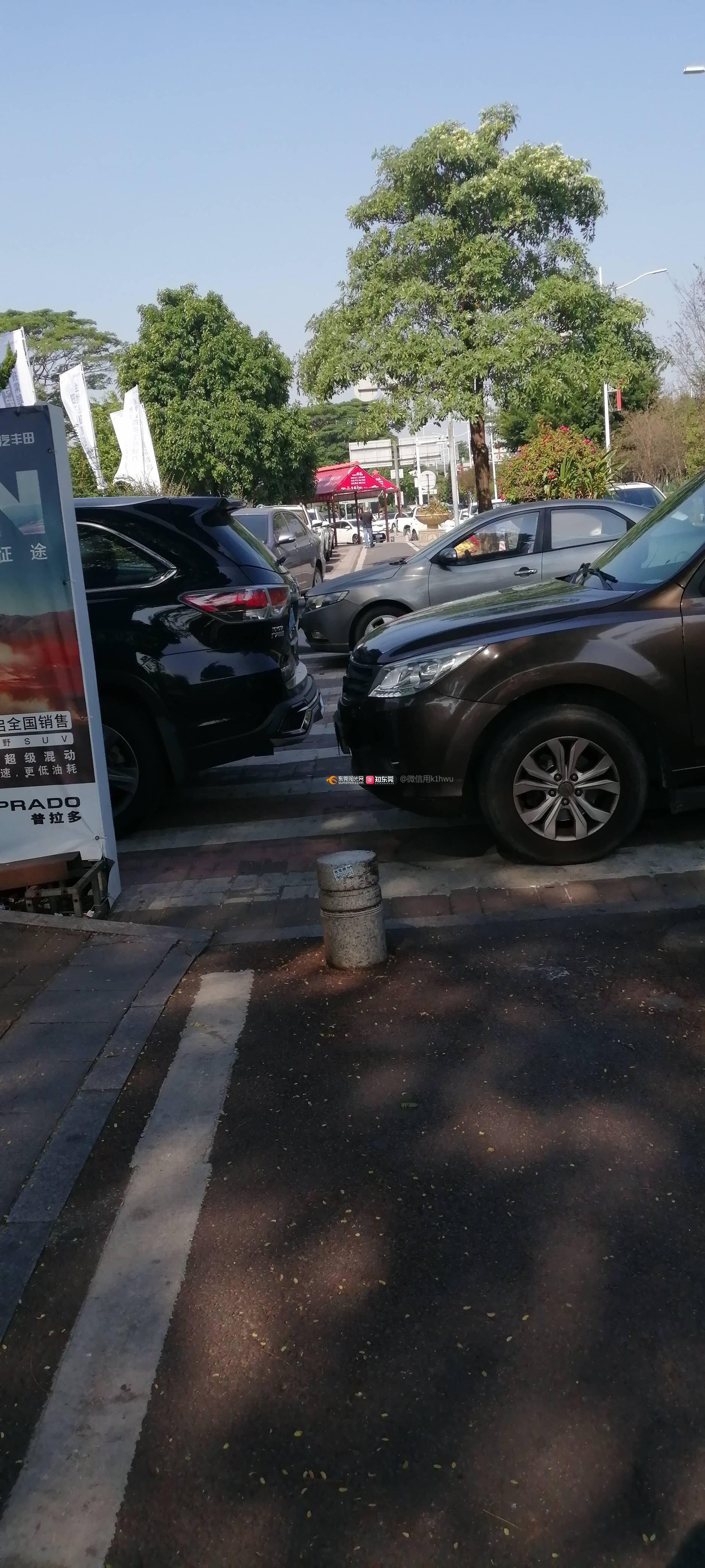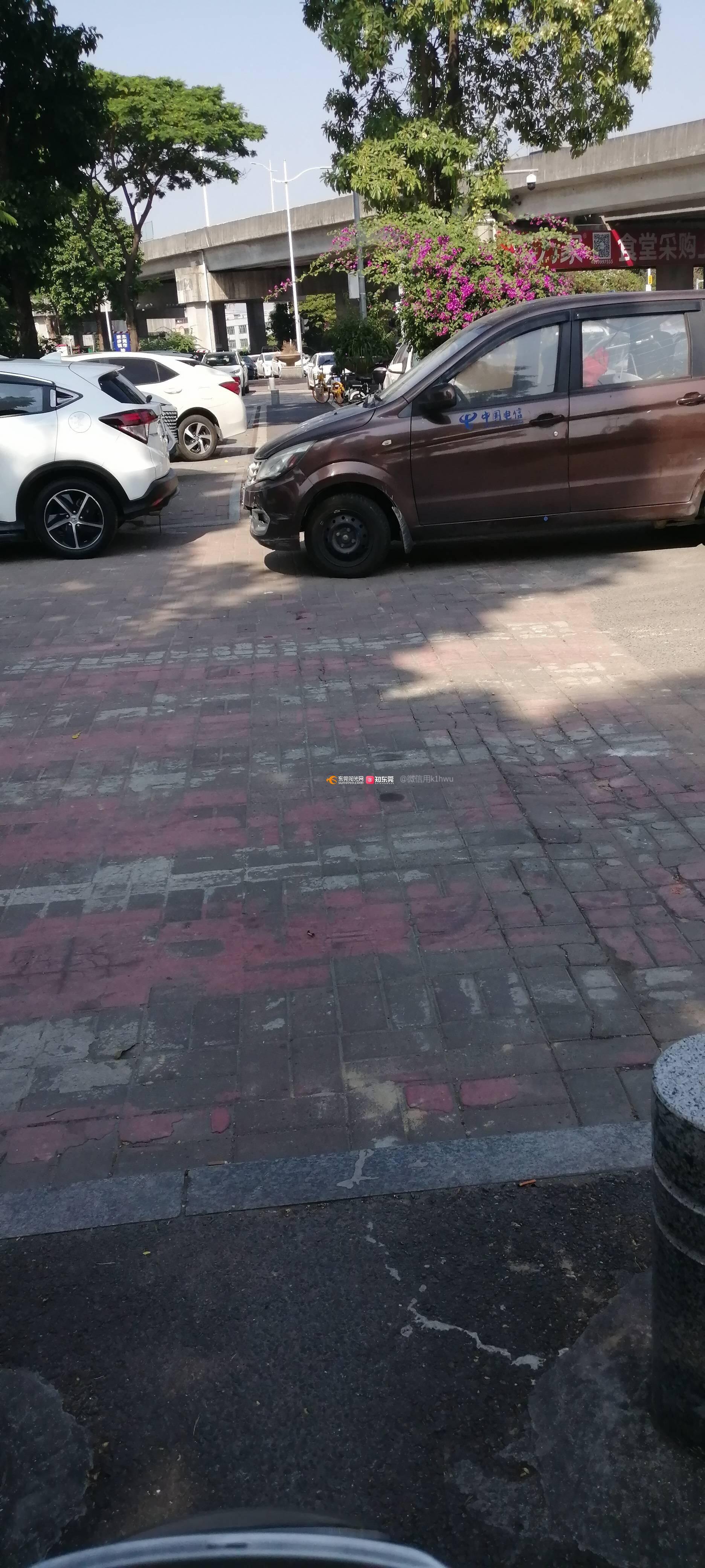 请问寮步香市路汽车城这里有私家车停放在非机动车道,人行道,又不能走机动车车道,是否合法,