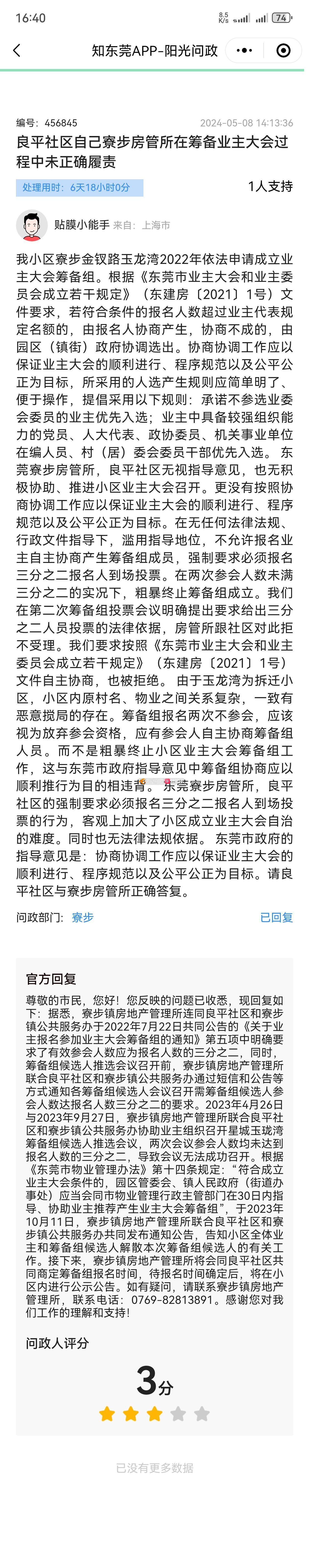 问政部门: 寮步