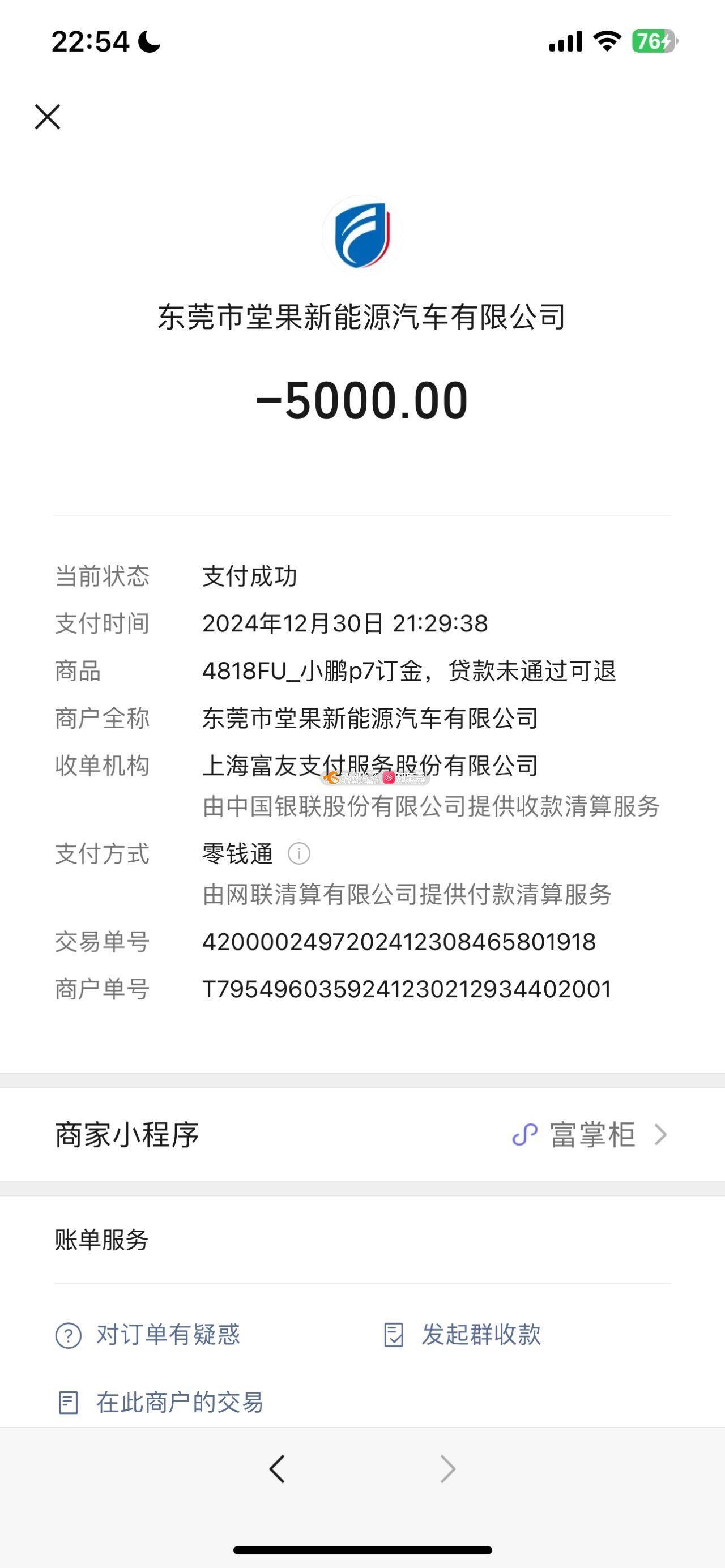 东莞市堂果新能源二手车行扣押定金,2024年12月30号,本人在堂果新能源二手车行订购一台二手车(小鹏p7),车行销售人员承诺消费者分期购买车辆贷款利息为3-4厘,且除了车辆商业险、购车费用、利息外,均无其他任何费用,所以本人与当晚21:30支付人民币¥5000作为购车订金,支付凭证图片(附下图),隔天提交资料审核贷款后,销售告知本人需要再次支付人民币2000元GPS安装费,且实际利息为4.9厘,与当时车行销售人员对本人承诺的金额不服,本人要求车行全额退还¥5000订金,遭到车行销售人员的拒绝并不接受沟通