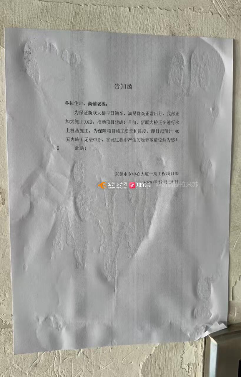 新联大桥属于市里工程项目,工地从2024年10月29日左右起,施工噪音大,经常夜间超时施工,现在已经通宵施工一个月。就工地通宵施工问题,已经向12345提交了12个工单,然后通宵施工问题依旧存在。相关部门相互踢皮球,并未介入处理。对于12345的投诉单,相关部门复制粘贴文案,表面上有处理,实际上并未处理,且相关部门承诺的内容与施工单位粘贴的通知完全不一样。现在工地施工单位在电梯口张贴通知需要通宵施工40天。请相关部门介入调查情况。
