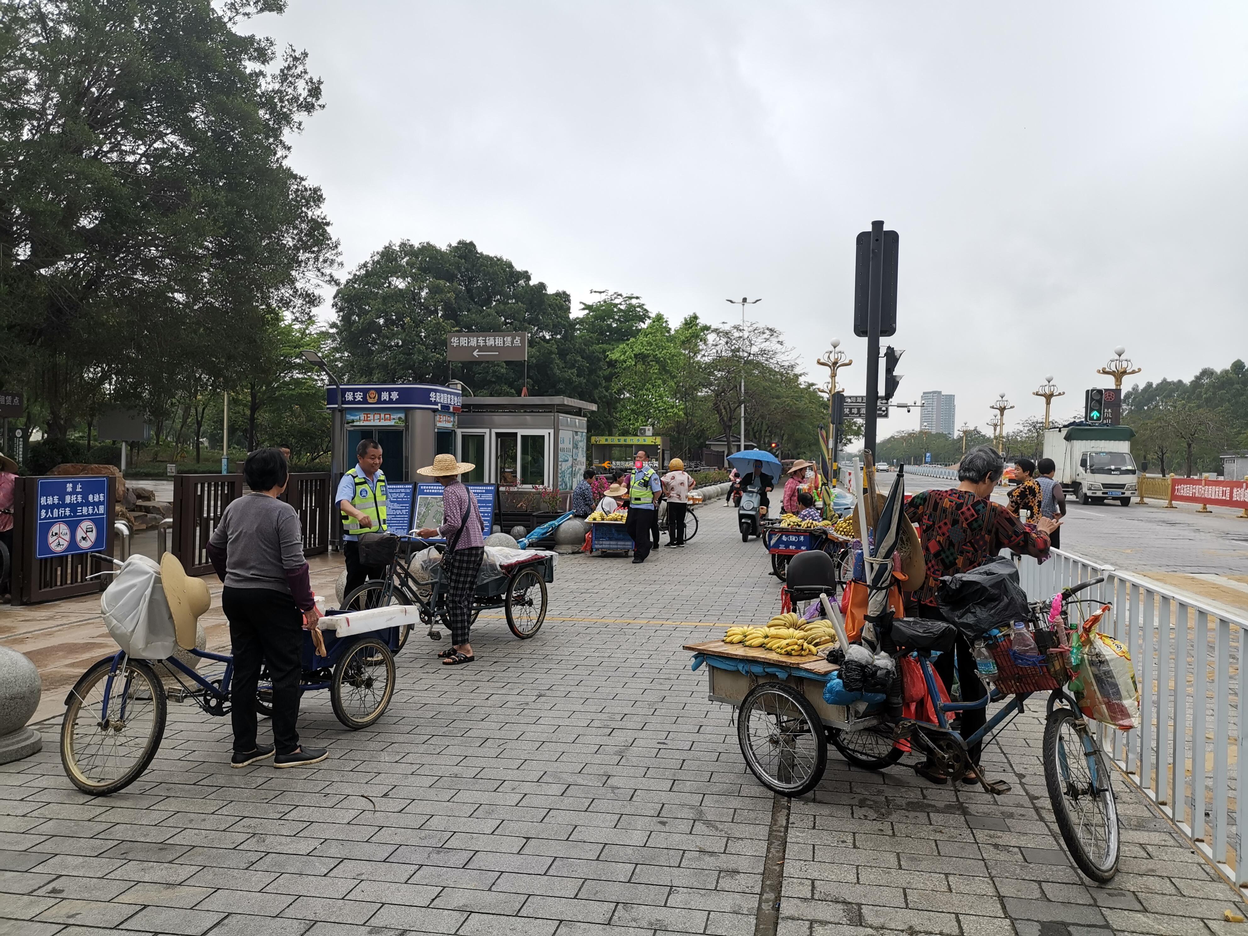 麻涌兴华路华阳湖公园主要入口,被摊贩围堵,无人管理,严重影响麻涌对外窗口形象和游客出入。