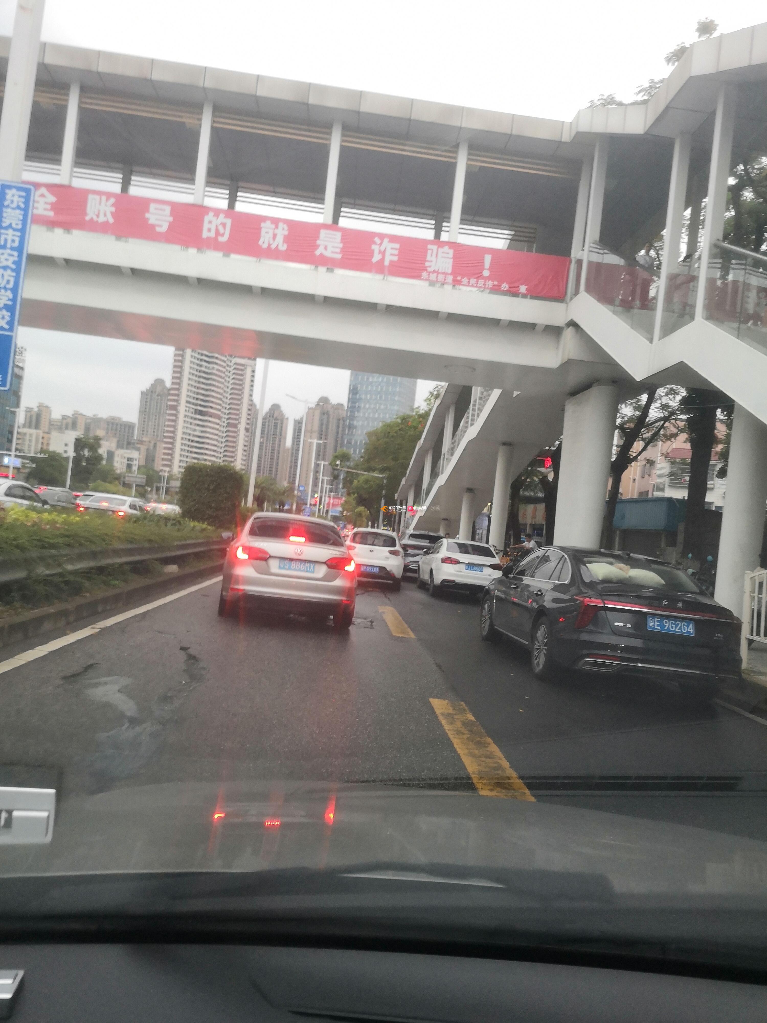 东莞市东城区莞樟路人行天桥下辅道公交车线路成了停车场