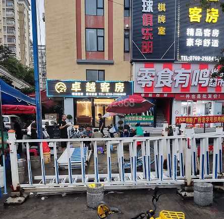 长安镇锦厦河南工业区锦荣路口,卓越客房围栏霸占门口公共街区。 之前该区域是公共街区,早上及晚上有早点及夜宵摊位,已经经营了几年,自今年该客房开设一来,多次利用小车停占、推到摊位等不同手段驱赶摊贩,也引起治安纠纷,但不了了之(据说上面有人撑腰)。 现在居然使用围栏强行霸占街区,凡在围栏内摆摊者必须缴纳保护费(只收现金),这种欺行霸市的霸凌行为居然在今天的法制社会还能存在,是什么人给的胆子?这种引起公愤的行为,锦厦社区、长安镇政府就不能处理吗???