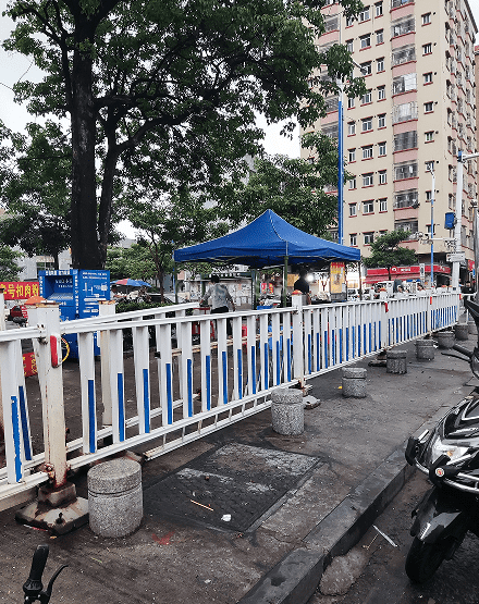 长安镇锦厦河南工业区锦荣路口围栏霸占公共街区