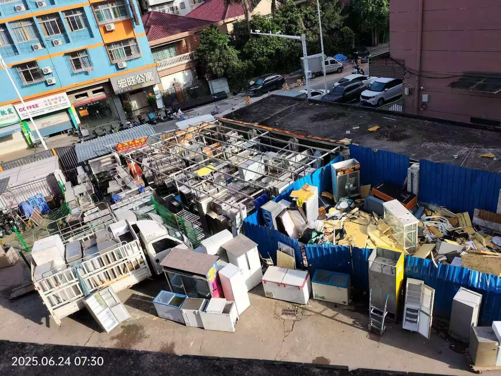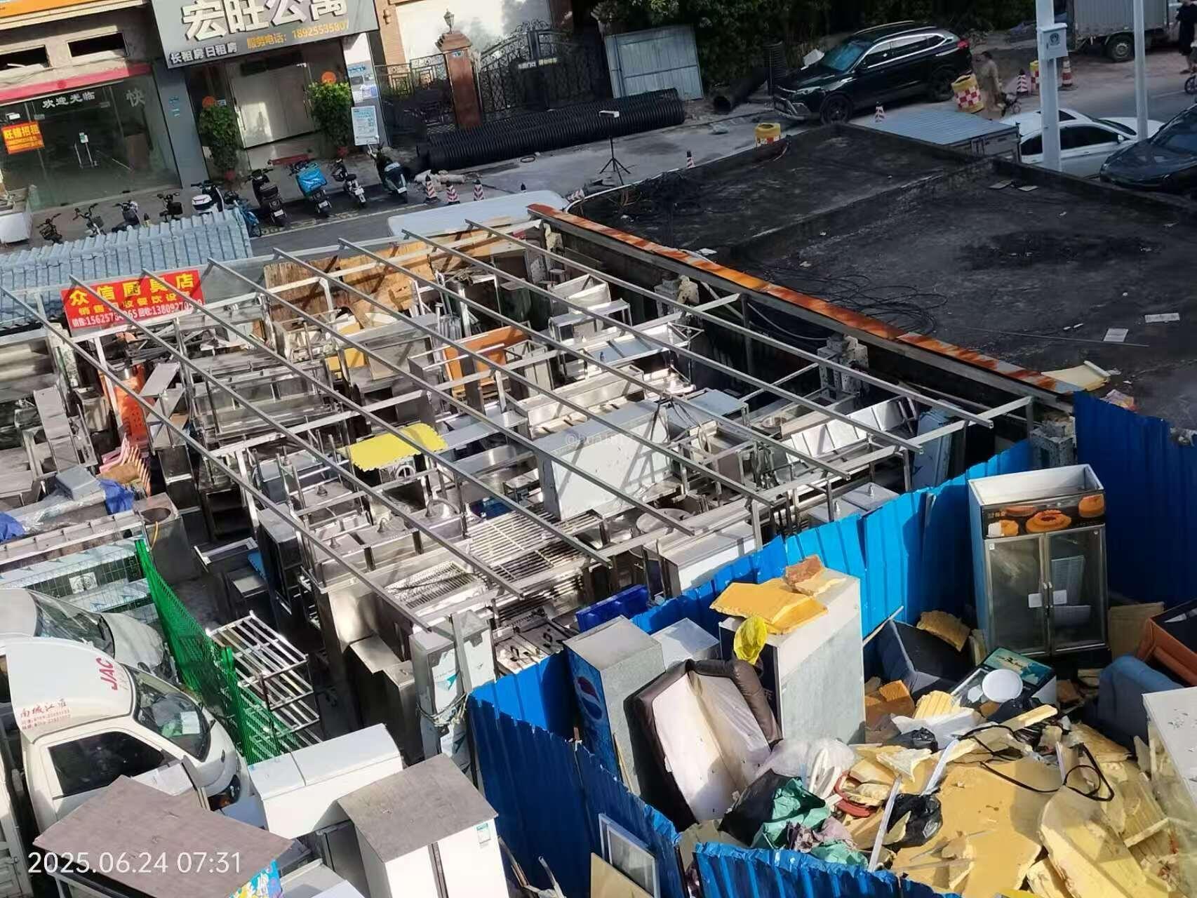 尊敬的市民,您好! 您反映的问题已收悉,现回复如下: 收到反映的情况后,南城城管工作人员对诉求进行办理。经了解,前期,物业公司已安排施工队对您所述铁棚的棚顶进行拆除,并表示剩余框架部分会尽快拆除。2025年7月8日,物业公司和我分局同时安排了施工队对剩余部分进行拆除,现场已拆除完毕并拍照取证。 另:经了解,关于垃圾投放问题,我房管所已督促物业公司严格按照垃圾分类办的要求对小区垃圾站进行管理,并对物业公司进行了扣分处罚。 针对所反映情况,我所已要求物业公司加强服务意识,积极做好小区公共区域的服务管理工作,严格按照《东莞市物业管理条例》和前期物业服务合同要求做好小区服务管理工作,妥善解决相关问题。