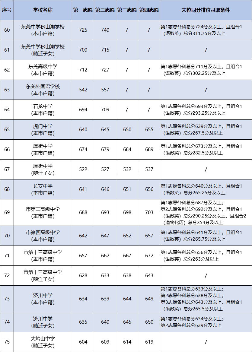 今年东莞中考户籍生和随迁生的走读生分数严重倒挂,请问入户东莞还有什么意义? 走读生政策有非常大的漏洞,严重利好随迁生!反而对东莞户籍生严重不利,严重不公平,随迁生比户籍生少很多,走读生名额是固定的,录取走读生的概率却大很多。 比如:1000个户籍生争50个走读生概率和300个随迁生争50个走读生概率,哪个概率大?肯定是随迁生容易啊!分子固定,分母越大数越小,也就是概率越小。 今年有走读生名额的学校,绝大部分随迁生的分数都低,而且是走读生名额越多出现这种分数倒挂的更严重,有些低的离谱,比如: 1、松莞招200个走读生,户籍正取分要739分,随迁生走读生分数只需要700分,相差39分; 2、厚街中学招125个走读生,户籍生正取分要679分,随迁生走读生分数只需要522分,相差157分; 3、十三中招260个走读生,户籍生正取分要672分,随迁生走读生分数只需要628分,相差44分; 4、大岭山招40个走读生,户籍生正取分要648分,随迁生走读生分数只需要604分,相差44分; 走读生政策应该按随迁生的录取名额占比来划分才是正确的科学的公平的,这样才不会出现倒挂现象,不然太不公平了,会造成户籍生比随迁生还高分很多反而录不上走读生! 比如:考生80000个,其中户籍生60000人,随迁生20000人,走读生名额2000个,户籍生占比6000080000*2000=1500个,随迁生占比2000080000*2000=500个,也就是户籍生的分配比是75%,随迁生的分配比是25%。然后再按名额分配的计算方法来分配有走读生的学校随迁生和户籍生的走读生名额占比!比如今年十三中的走读生260个,户籍生走读生名额占比:260*75%=195走读生名额,随迁生走读生名额占比:260*25%=65个,这样才是公平公正科学的方法!