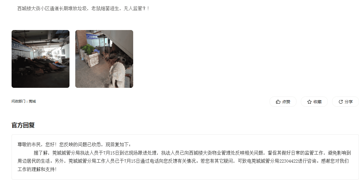西城楼小区内堆积多年垃圾细菌滋生,严重污染卫生环境投诉多年至今仍未得到管理