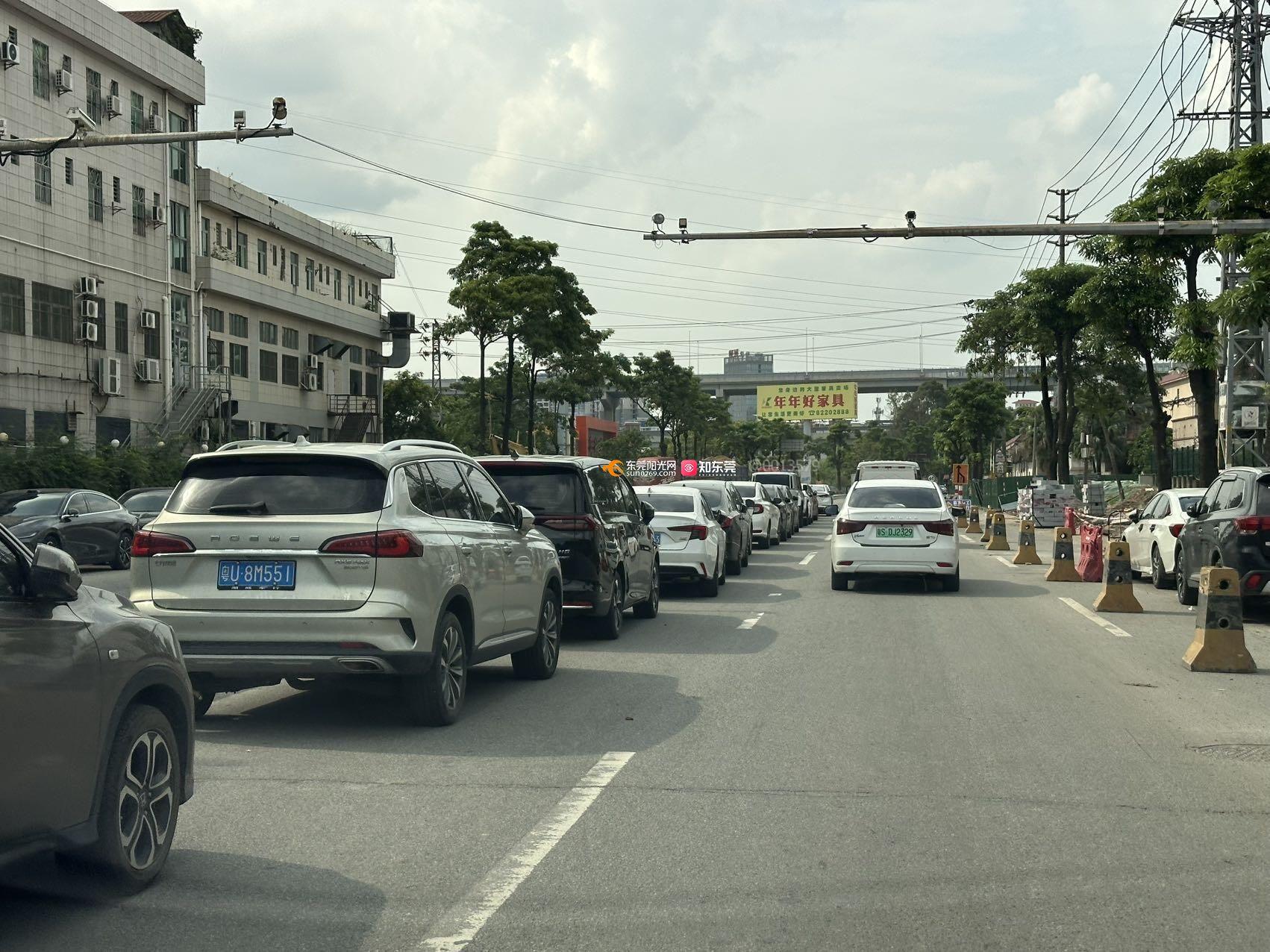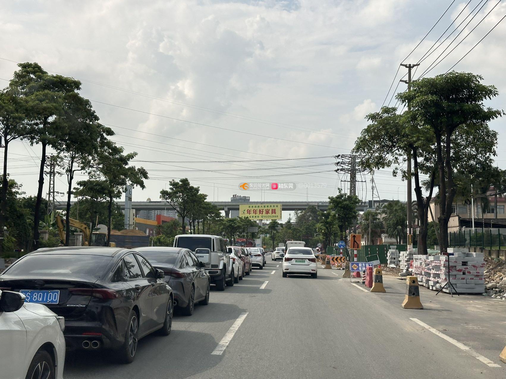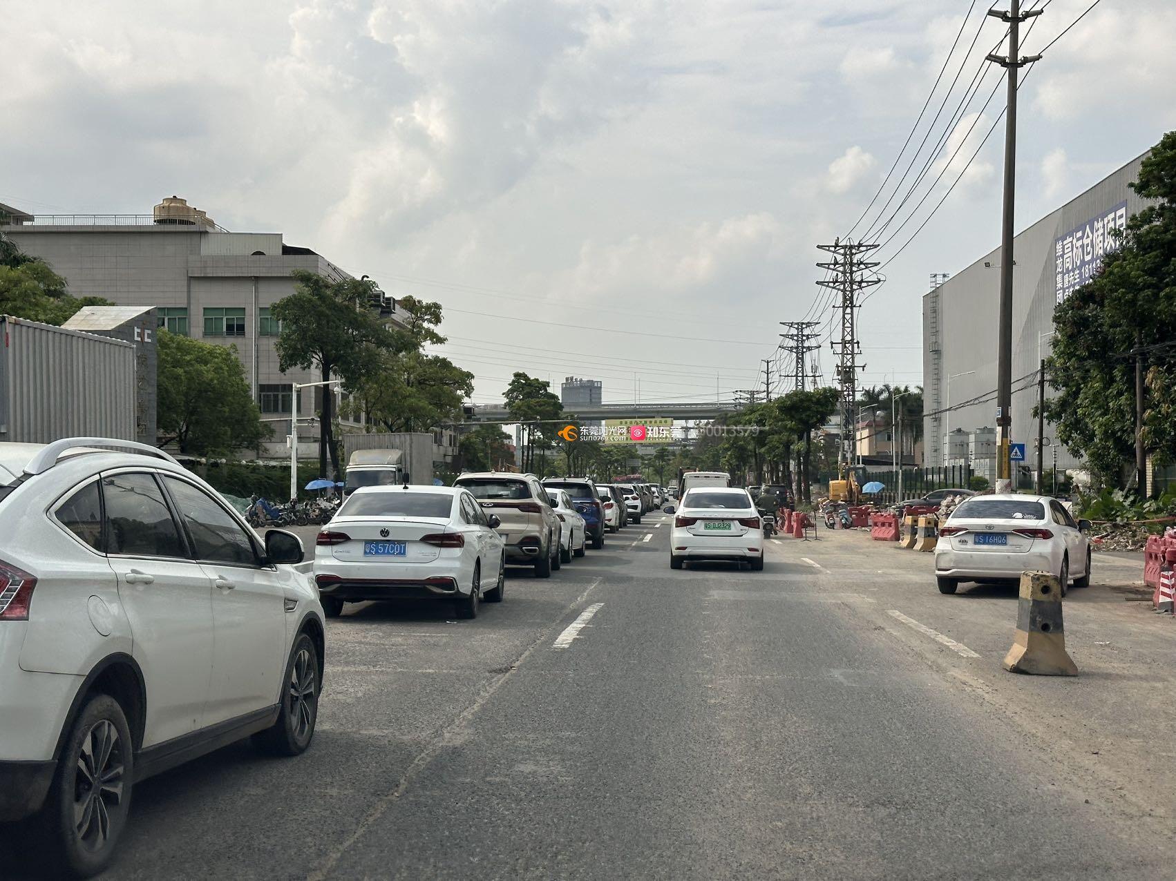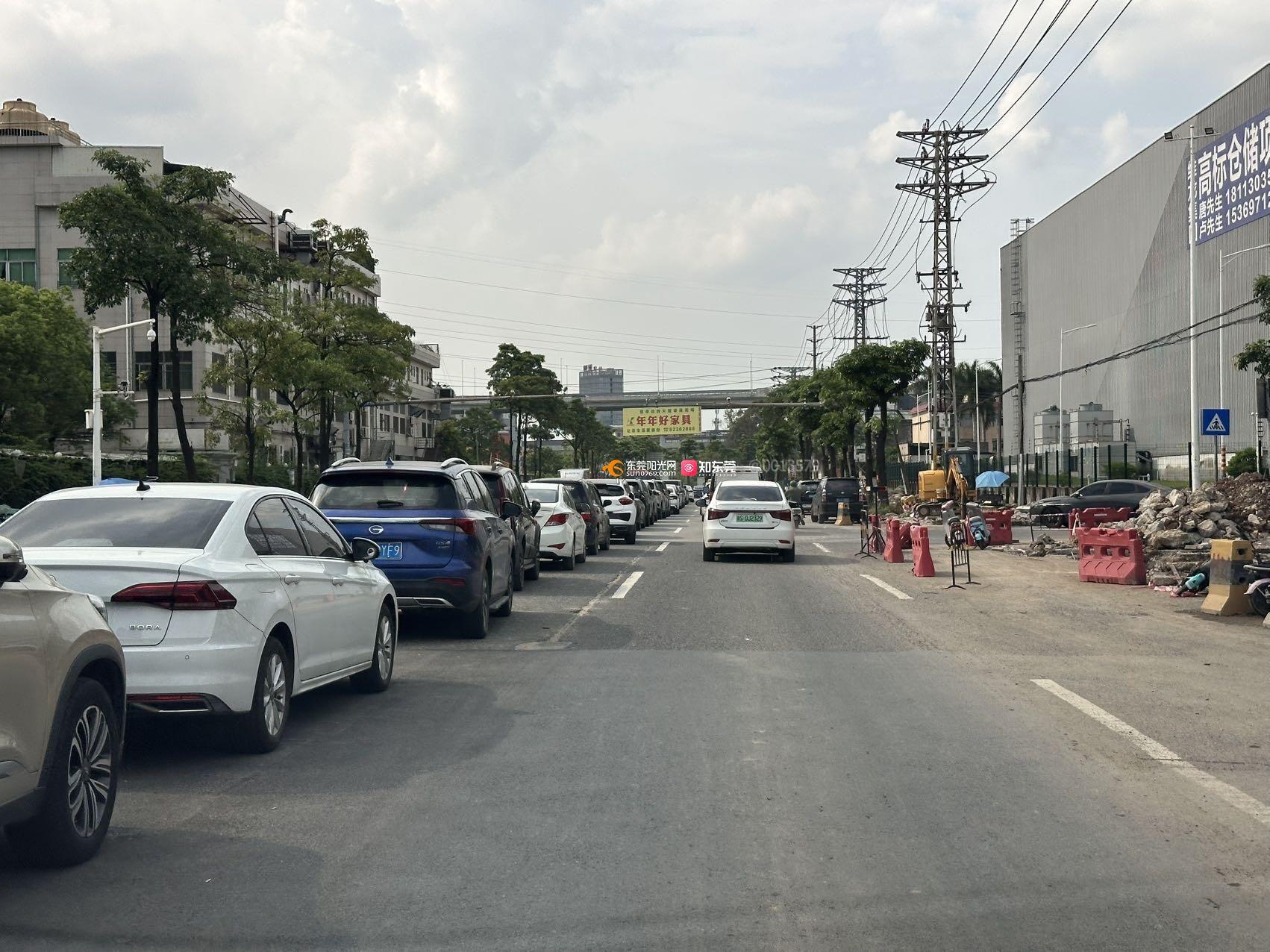 东莞市常平镇常横路,修路市民车辆违停在路中间三车道变一车道,已经一个多月了,为什么相关部门至今还没处理?