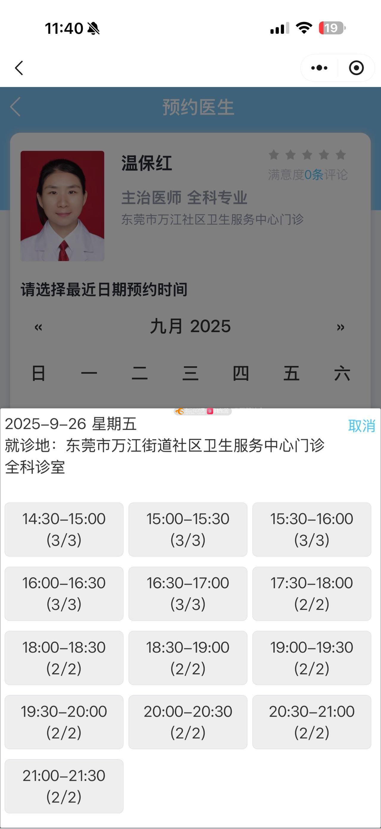 东莞市万江社区卫生服务中心在健康东莞小程序上预约医生号少之又少,非常不合理,一个医生一个时间段只能预约一个号!有点一个时间段只有5个号,全是现场挂号,门诊工作人员给出回答说因为很多老人家投诉,但是本质上是医院医生不足,并不是网上放号太多的原因导致医生看不过来! 小程序一个医生只放5个号还不如不放!正常人不会抢到! 上班族根本没时间现场排队!这个非常不合理,万江社区的社区医院为什么这么不人性化!希望街道从本质上解决问题,而不是治标不治本,难道网上少放号大家就能看上病了?没有得到本质上的问题结论,反而导致上班族看病难,挂号难,耽误治疗时间!希望部门好好重视这个问题!