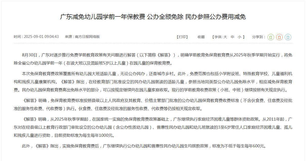 8月30日,广东对逐步推行免费学前教育政策有关问题进行解答(以下简称《解答》),明确学前教育免保育教育费从2025年秋季学期开始实行,将免除全省公办幼儿园学前一年(在读大班以及混龄班5岁以上儿童)在园儿童的保育教育费。 东莞多地区已经开始实行,为什么黄江还没有相应的通知下来呢?