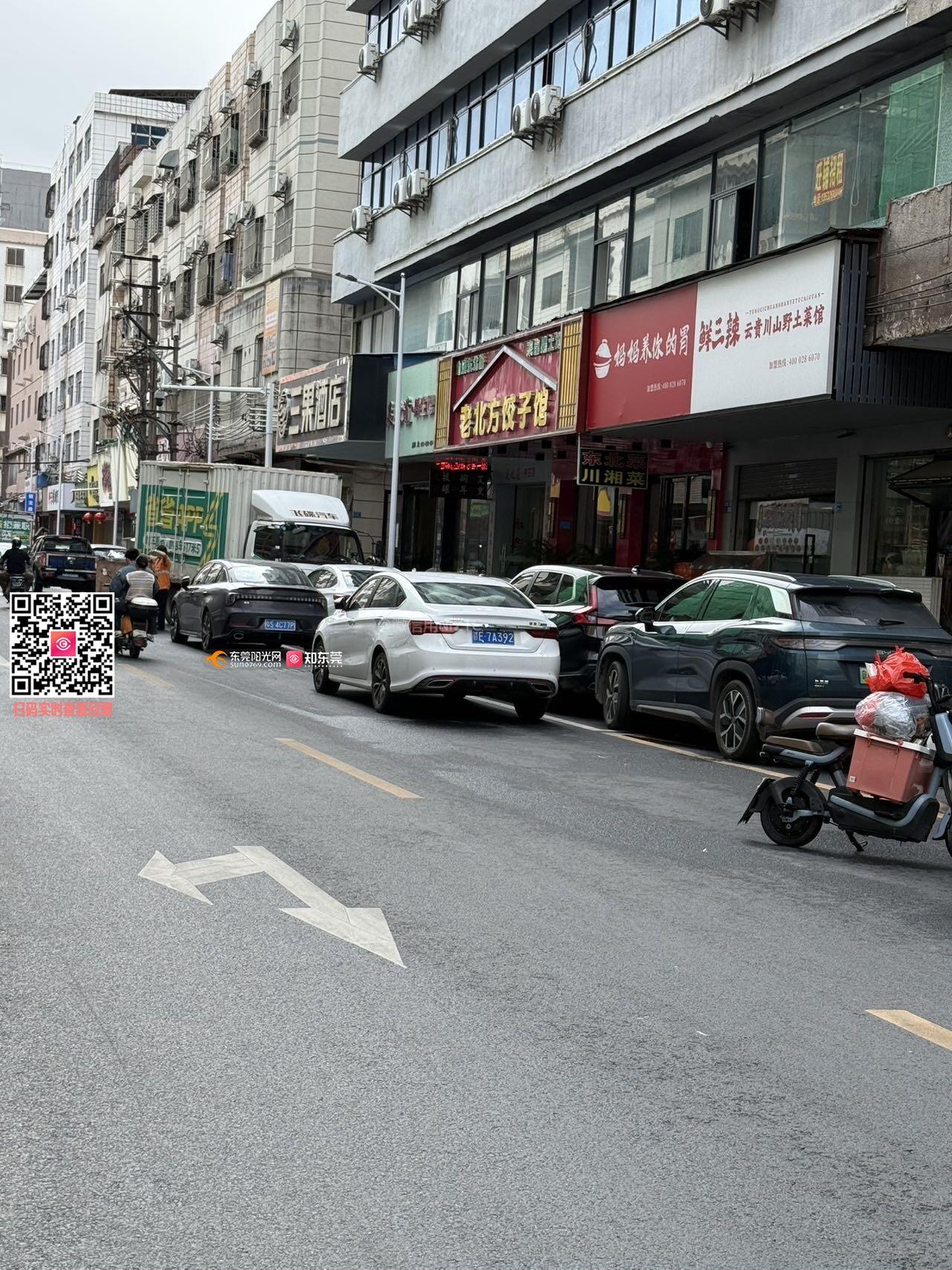 东莞虎门永康街双向车道停满车变单车道