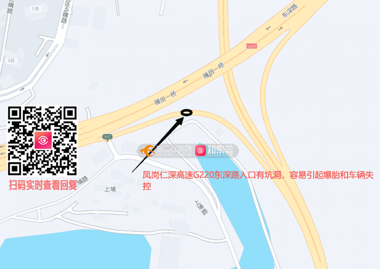 凤岗仁深高速G220东深路入口有坑洞,容易引起爆胎和车辆失控