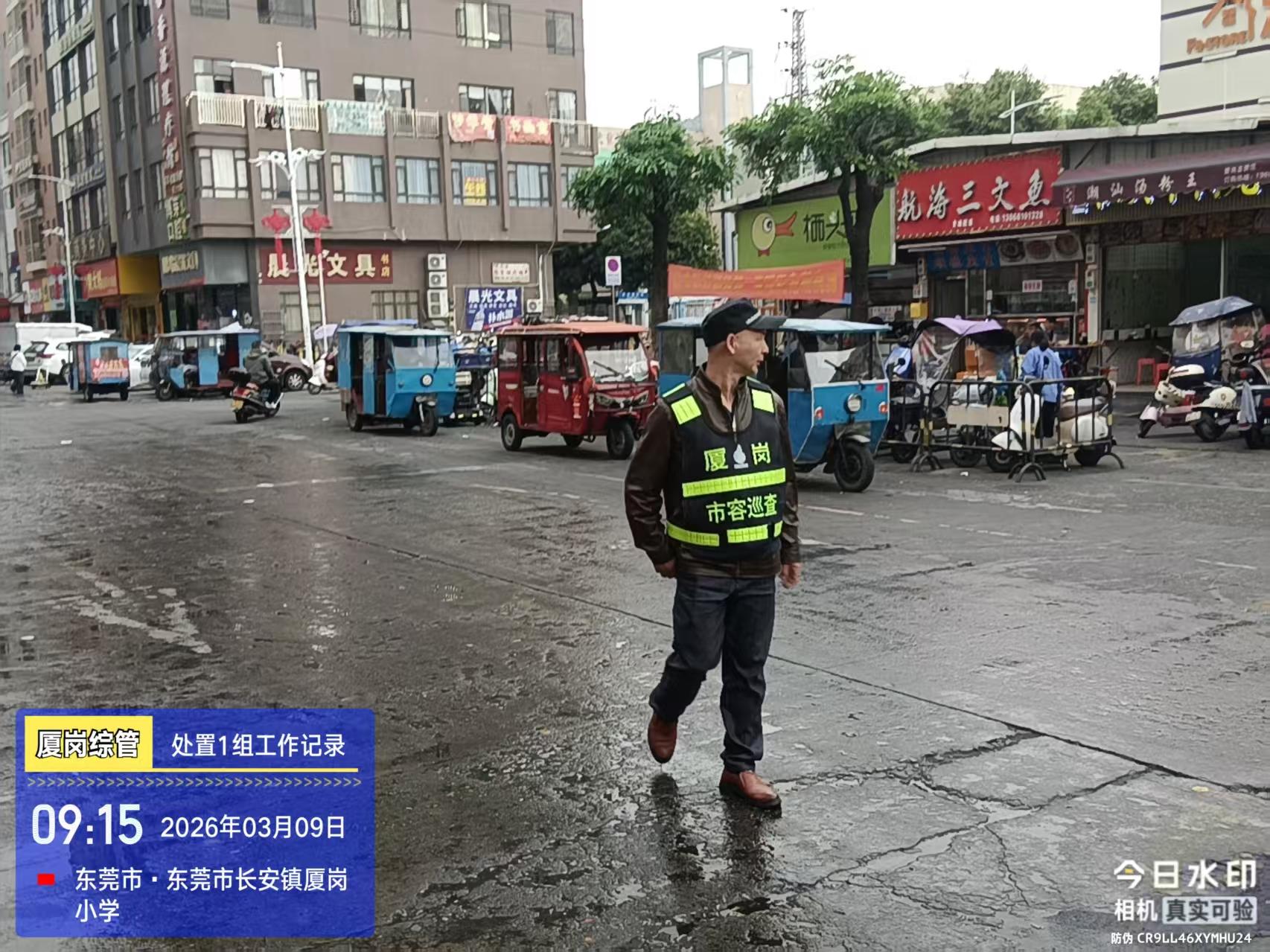 我要投诉长安镇厦岗市场大门口有好多三轮车占道经营、乱摆乱卖问题。长期以来,多处路段有三轮车随意占道摆摊、停放,严重占用机动车道、人行道及消防通道,造成交通堵塞、出行不便、安全隐患突出,影响周边居民正常通行,也破坏市容环境。 恳请相关部门尽快现场核查、依法整治、加强巡查管控,还市民安全、畅通的出行环境。