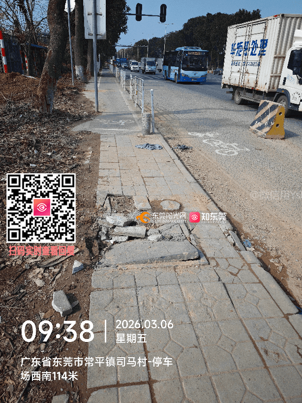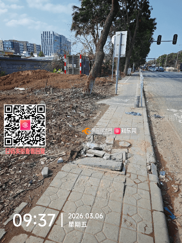 尊敬的市民,您好!您反映的问题已收悉,现回复如下: 收到您反映的情况后,我分局执法人员于2026年3月6日15:23对诉求进行现场核实,经查,投诉问题属实。执法人员要求公用事业服务中心向承包公司通报该投诉事项,对您反映的人行道垃圾开展清扫清理作业,现已清理完毕。对于人行道破损问题已督促公用事业服务中心对您反映的人行道破损问题制定维修方案,并加快维修。另,关于路边乱倒渣土问题,已向属地村委会反馈,要求其及时整改,落实属地管理责任并加强巡查监管。我分局执法人员于 3 月 11 日 9:41与您电话联系,反馈相关情况。 如有疑问,请联系常平城管分局,联系电话:0769-83818813。感谢您对我们工作的理解和支持!